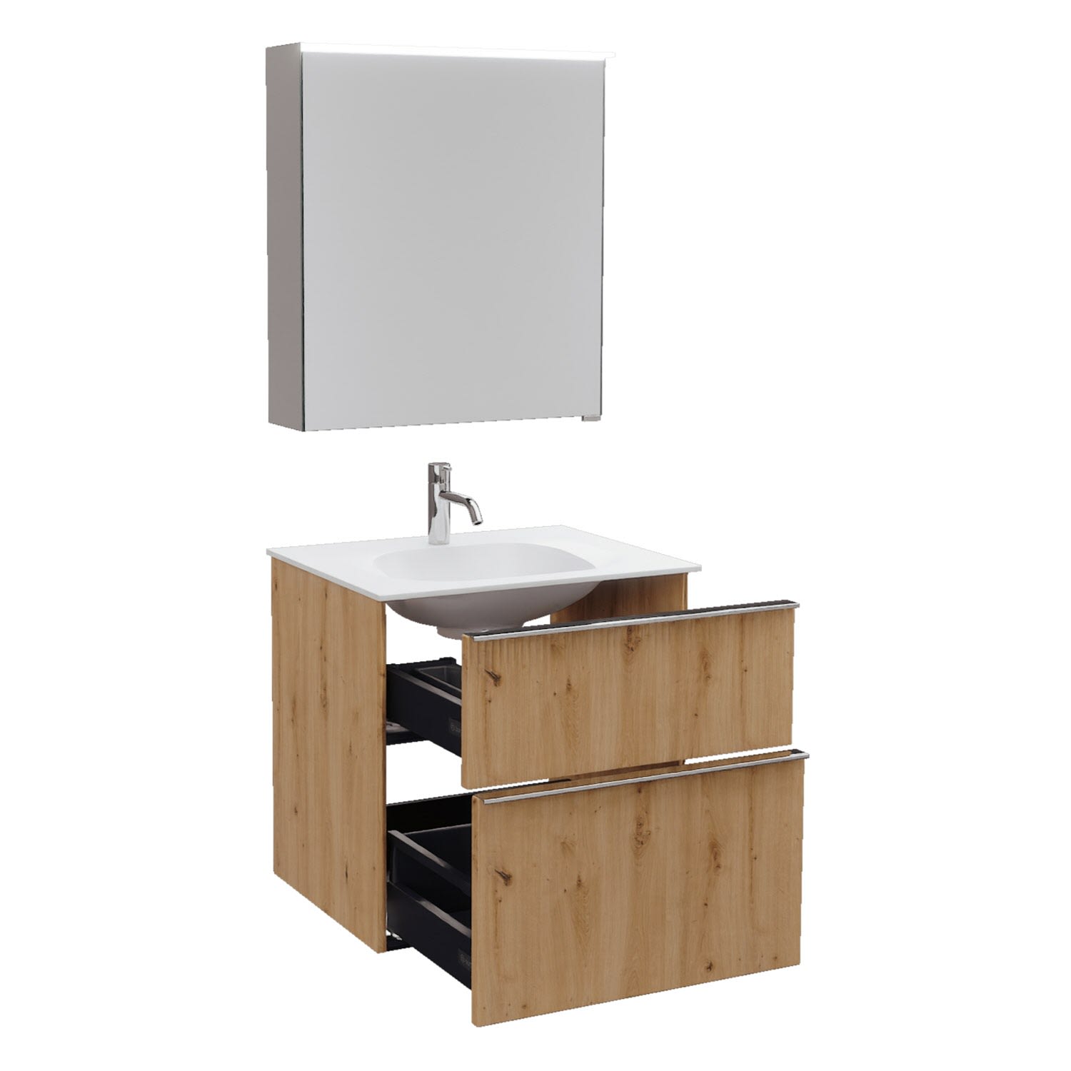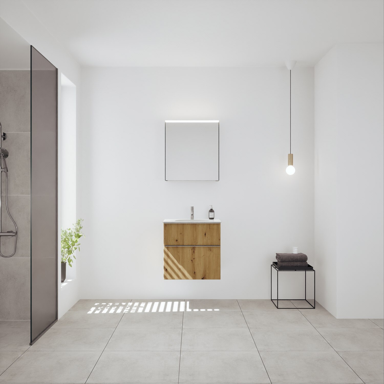 burgbad Fiumo 2.0 Badmöbelset 62 cm mit Waschtisch mit Unterschrank mit Griff G0146 und Spiegelschrank