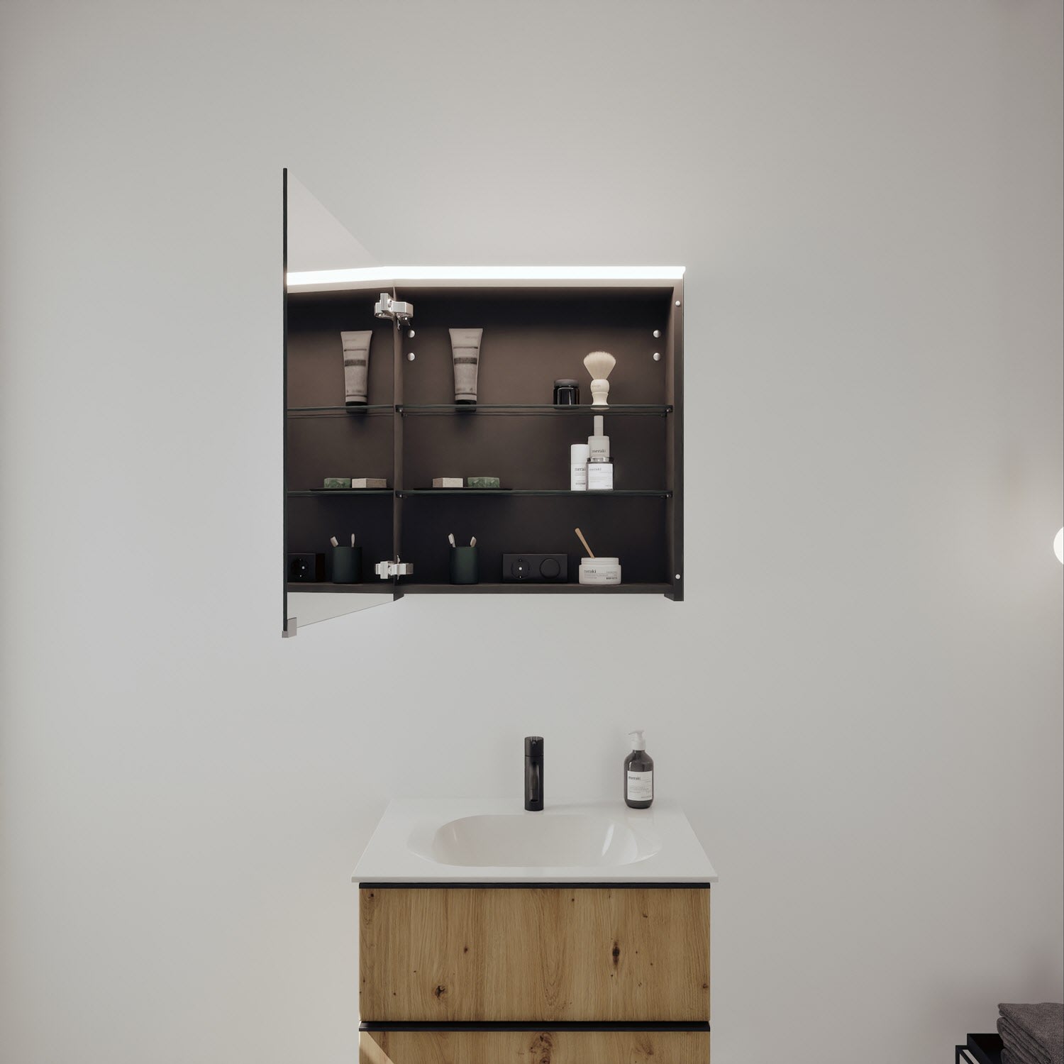 - Spiegelschrank, Waschtischunterschrank, Waschtisch, burgbad cleanFlow, Befestigung außer Stockschrauben