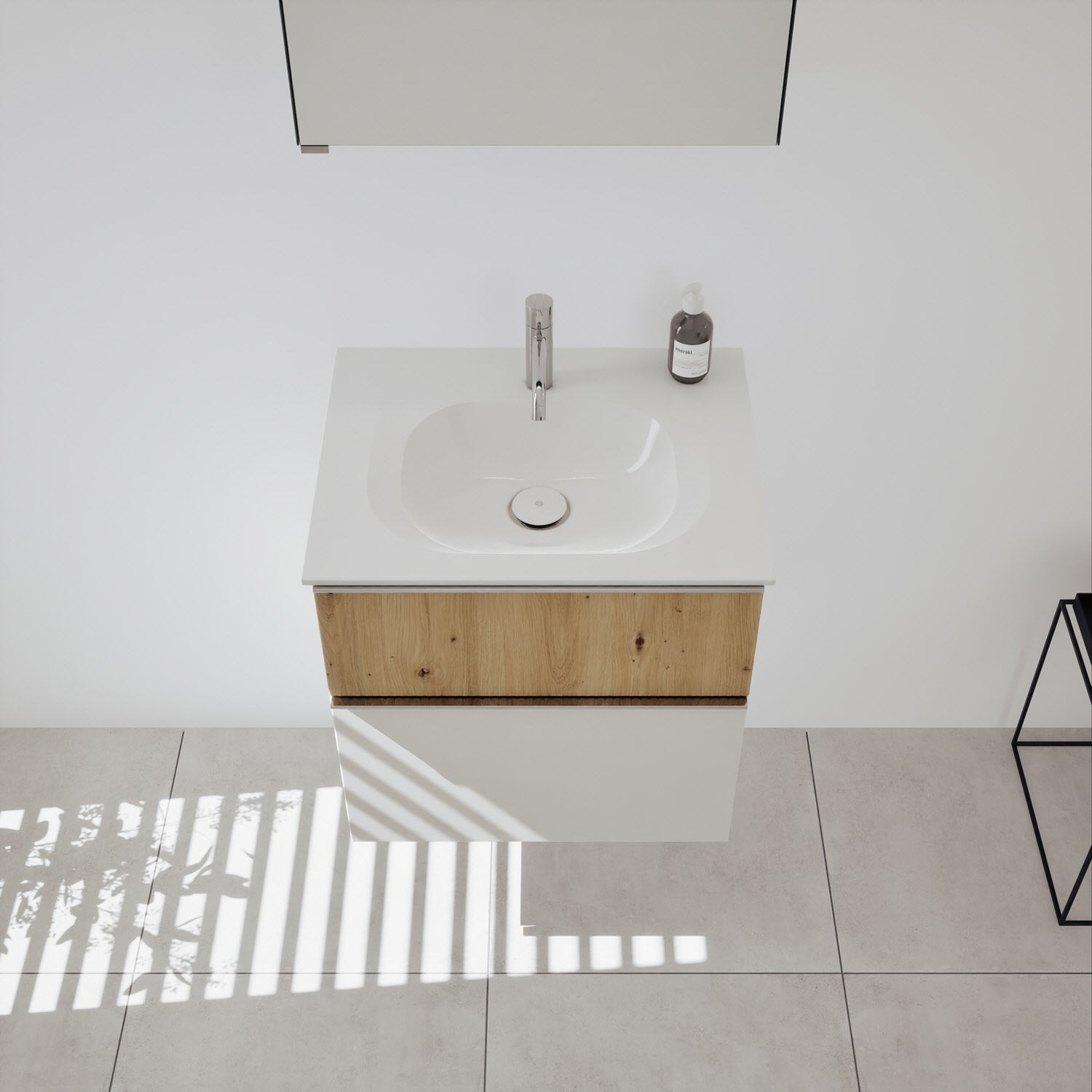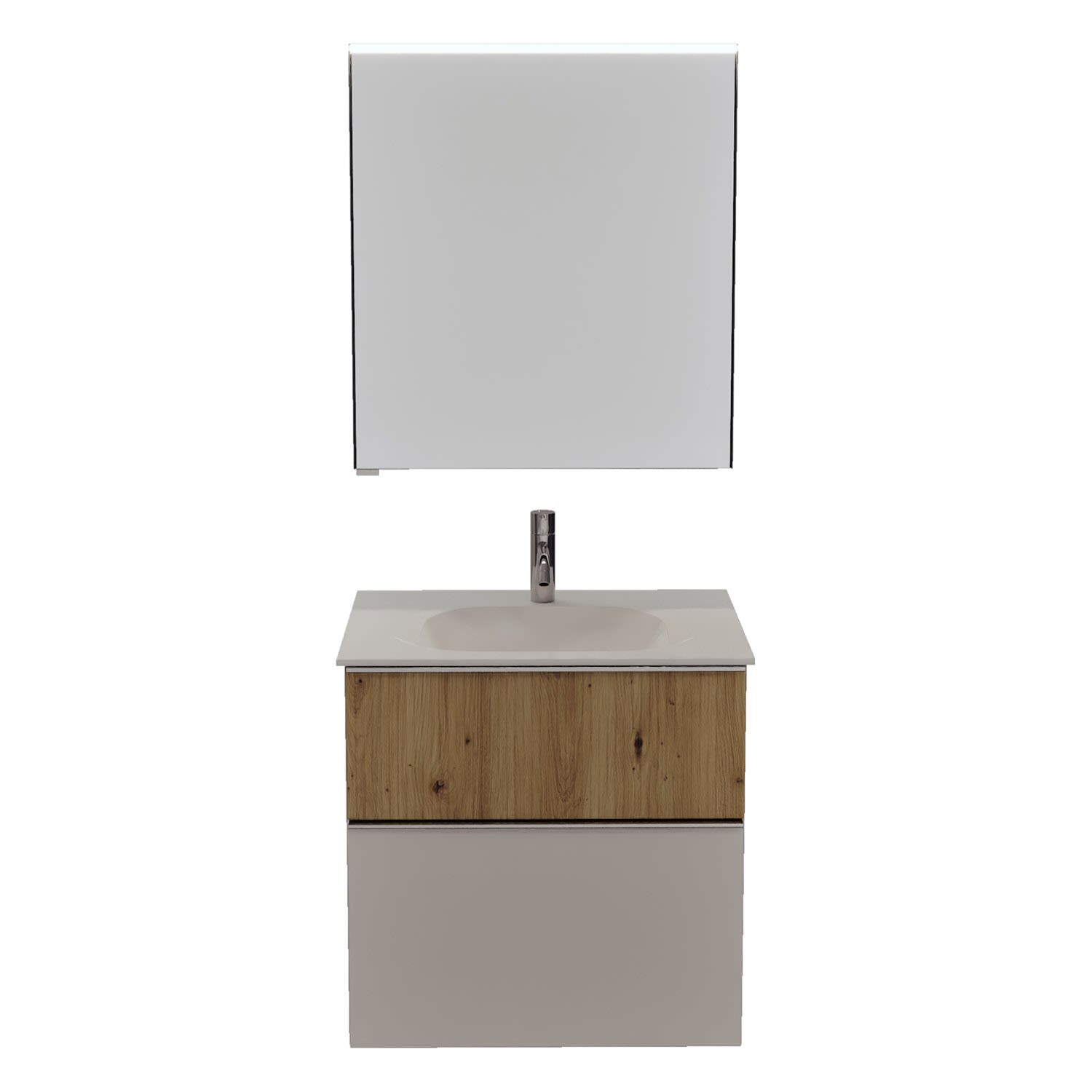 burgbad Fiumo 2.0 Badmöbelset 62 cm mit Waschtisch mit Unterschrank mit Griff G0146 und Spiegelschrank