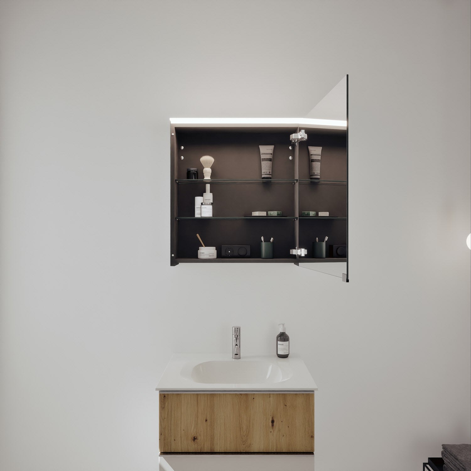 - Spiegelschrank, Waschtischunterschrank, Waschtisch, burgbad cleanFlow, Befestigung außer Stockschrauben