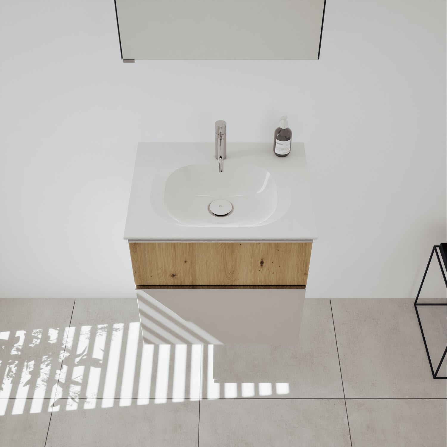 burgbad Fiumo 2.0 Badmöbelset 62 cm mit Waschtisch mit Unterschrank mit Griff G0146 und Spiegelschrank