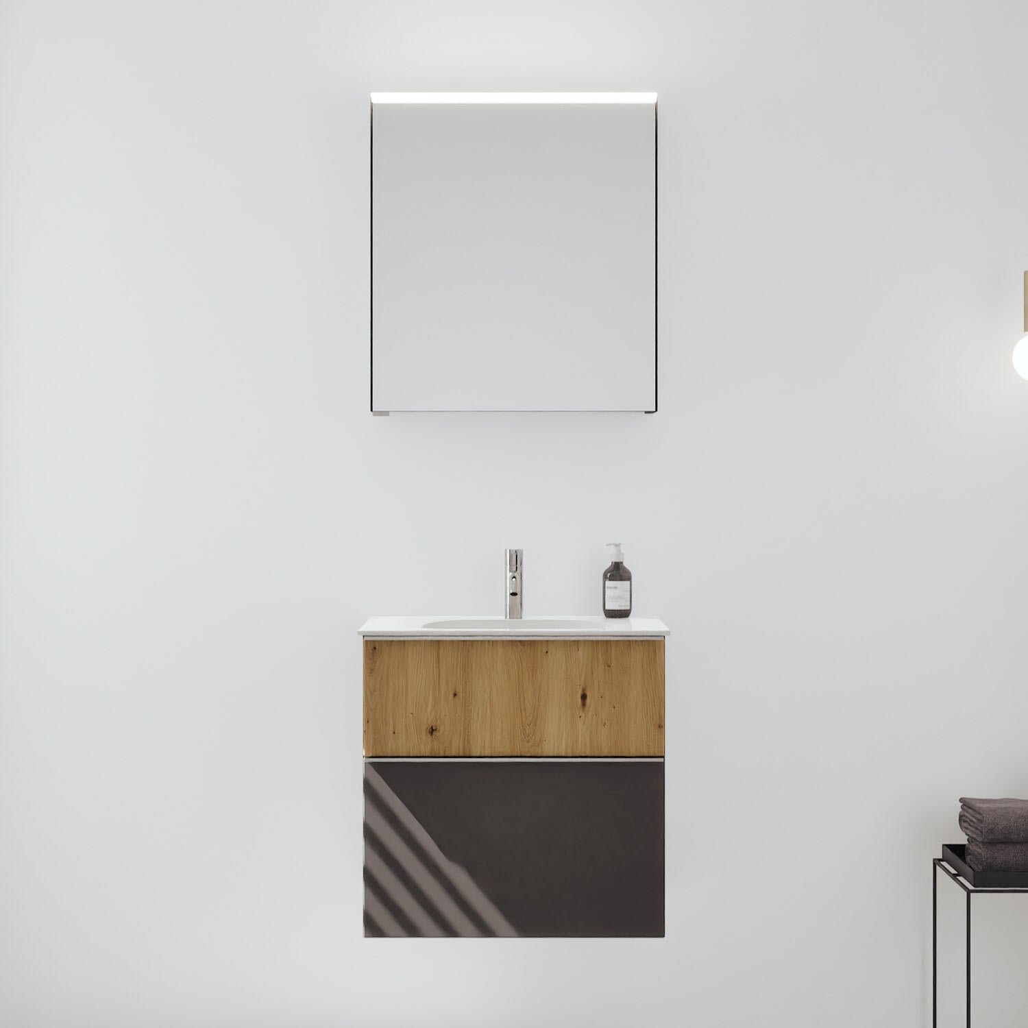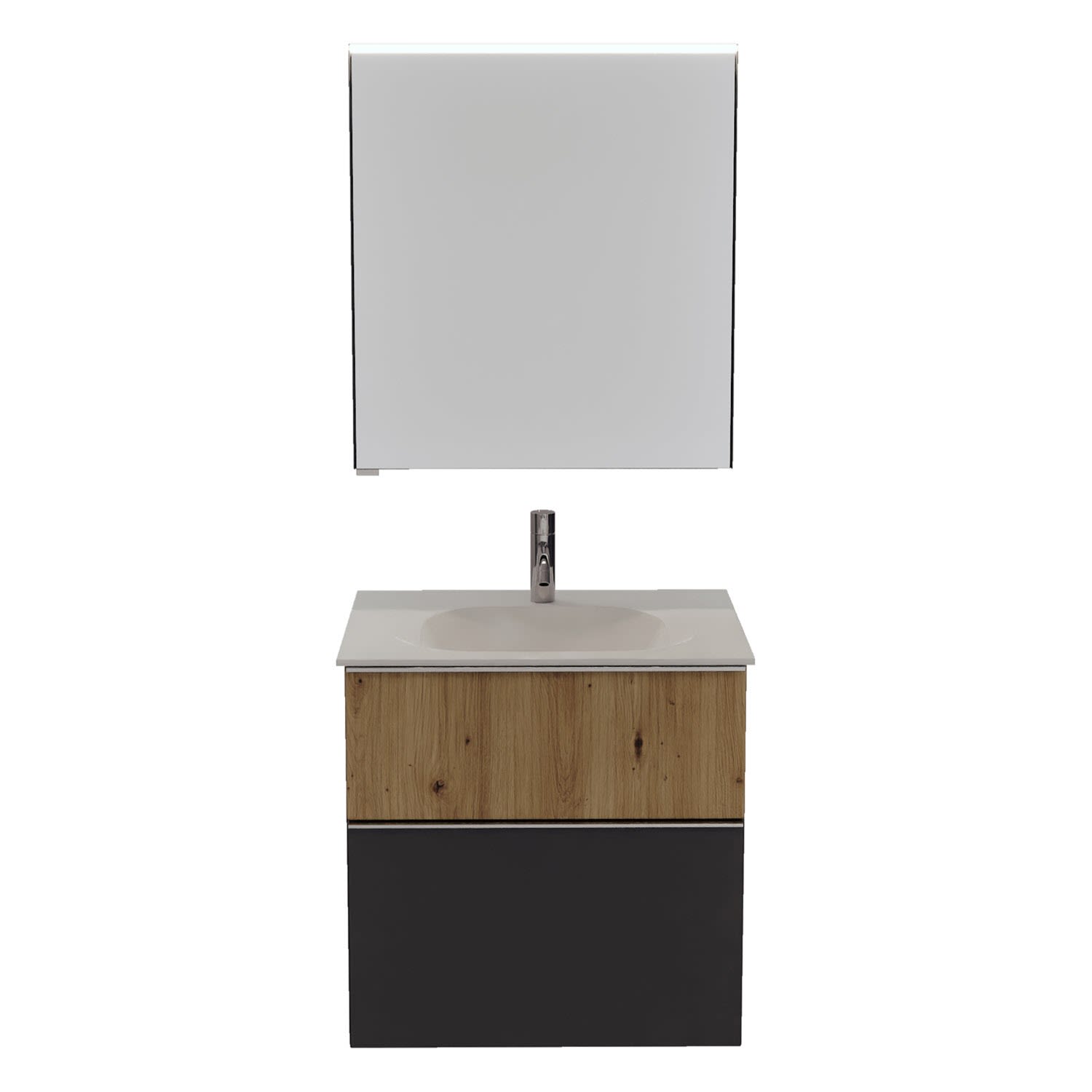 burgbad Fiumo 2.0 Badmöbelset 62 cm mit Waschtisch mit Unterschrank mit Griff G0146 und Spiegelschrank