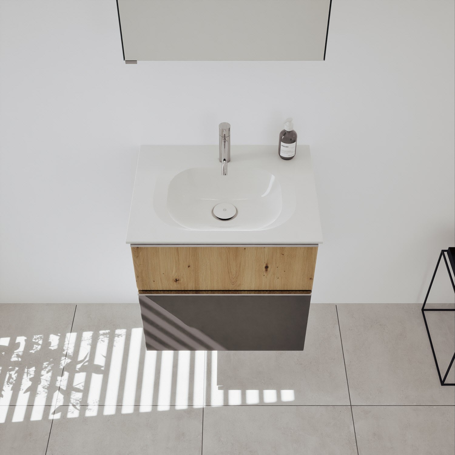 - Spiegelschrank, Waschtischunterschrank, Waschtisch, burgbad cleanFlow, Befestigung außer Stockschrauben