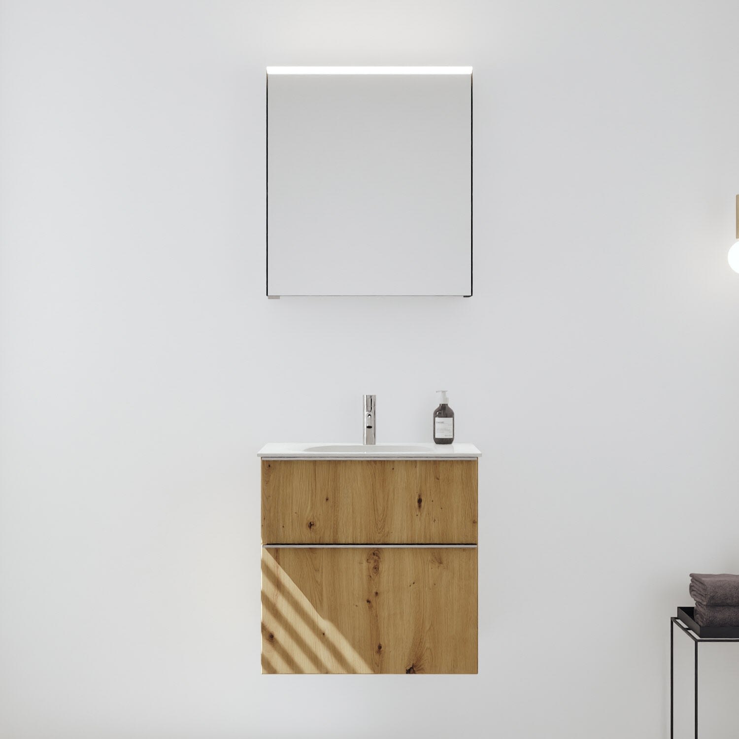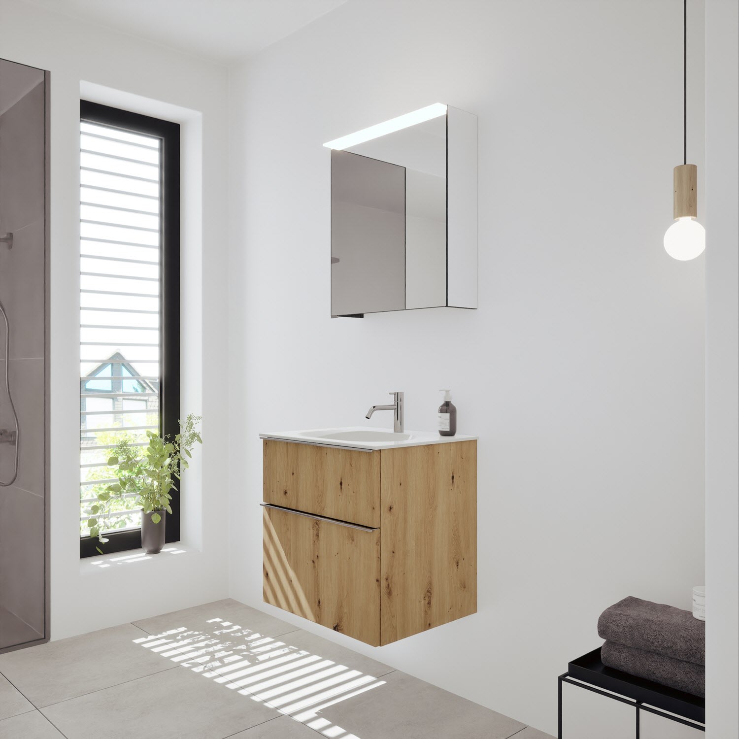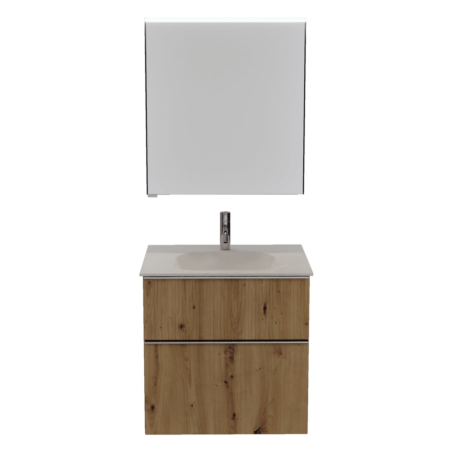 burgbad Fiumo 2.0 Badmöbelset 62 cm mit Waschtisch mit Unterschrank mit Griff G0146 und Spiegelschrank