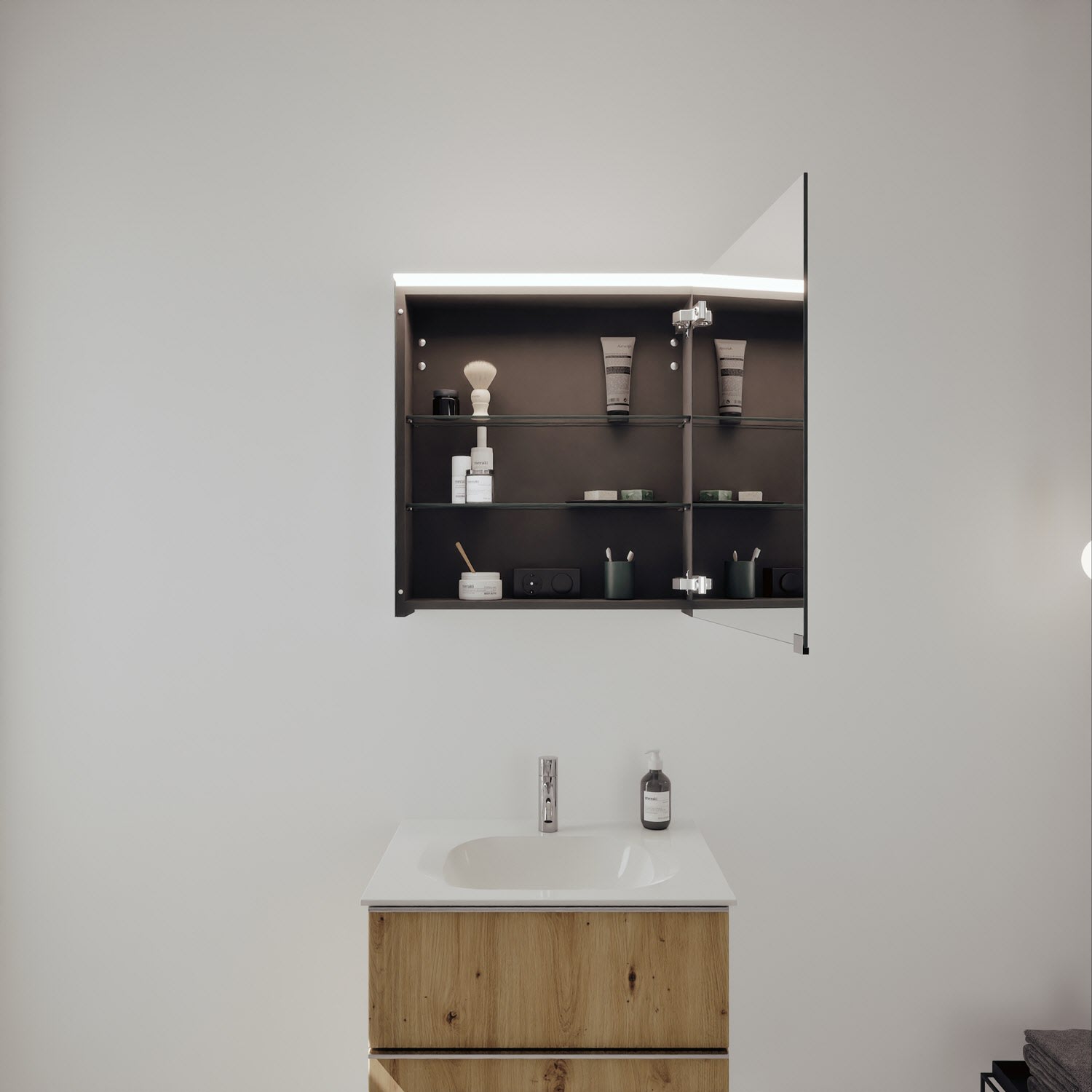 - Spiegelschrank, Waschtischunterschrank, Waschtisch, burgbad cleanFlow, Befestigung außer Stockschrauben