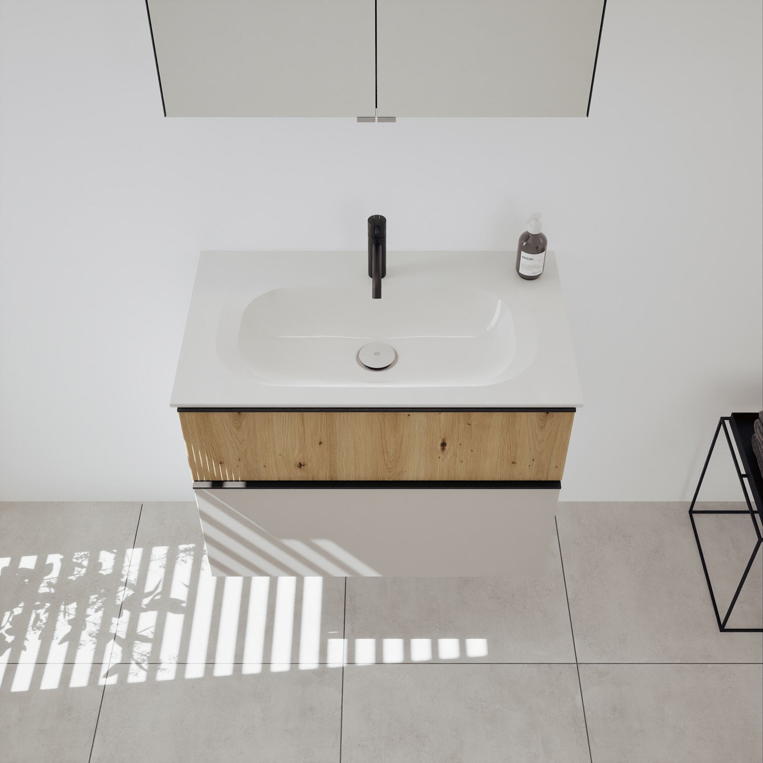 - Spiegelschrank, Waschtischunterschrank, Waschtisch, burgbad cleanFlow, Befestigung außer Stockschrauben