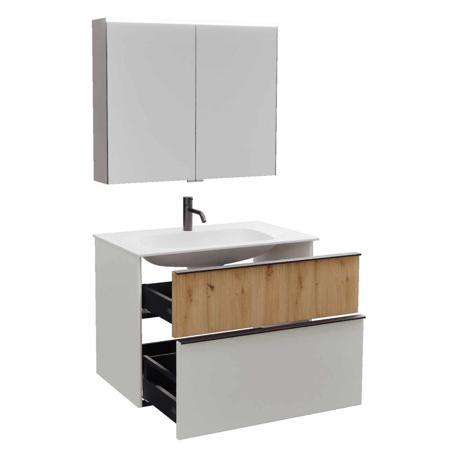 burgbad Fiumo 2.0 Badmöbelset 82 cm mit Waschtisch mit Unterschrank mit Griff G0200 und Spiegelschrank