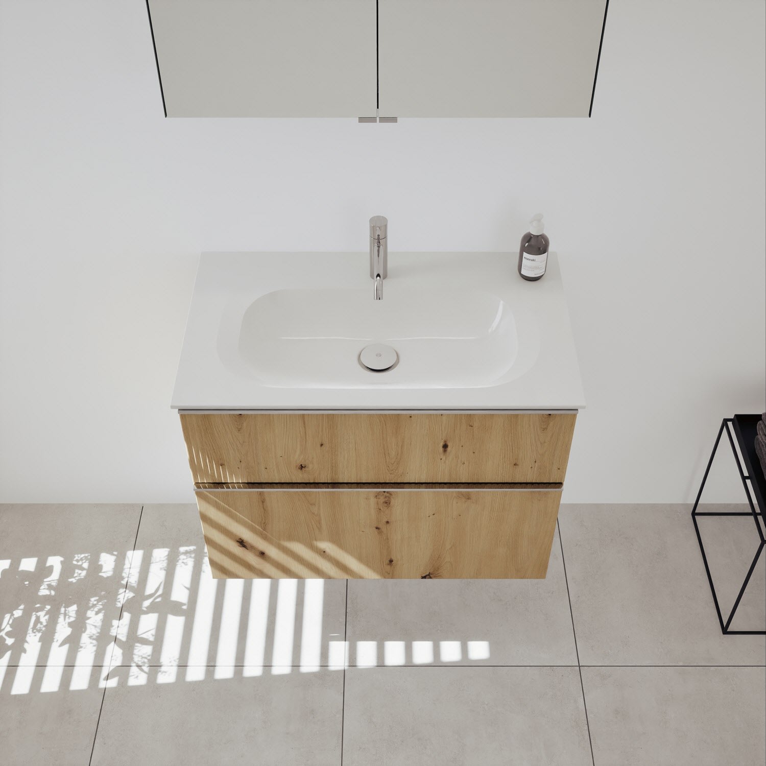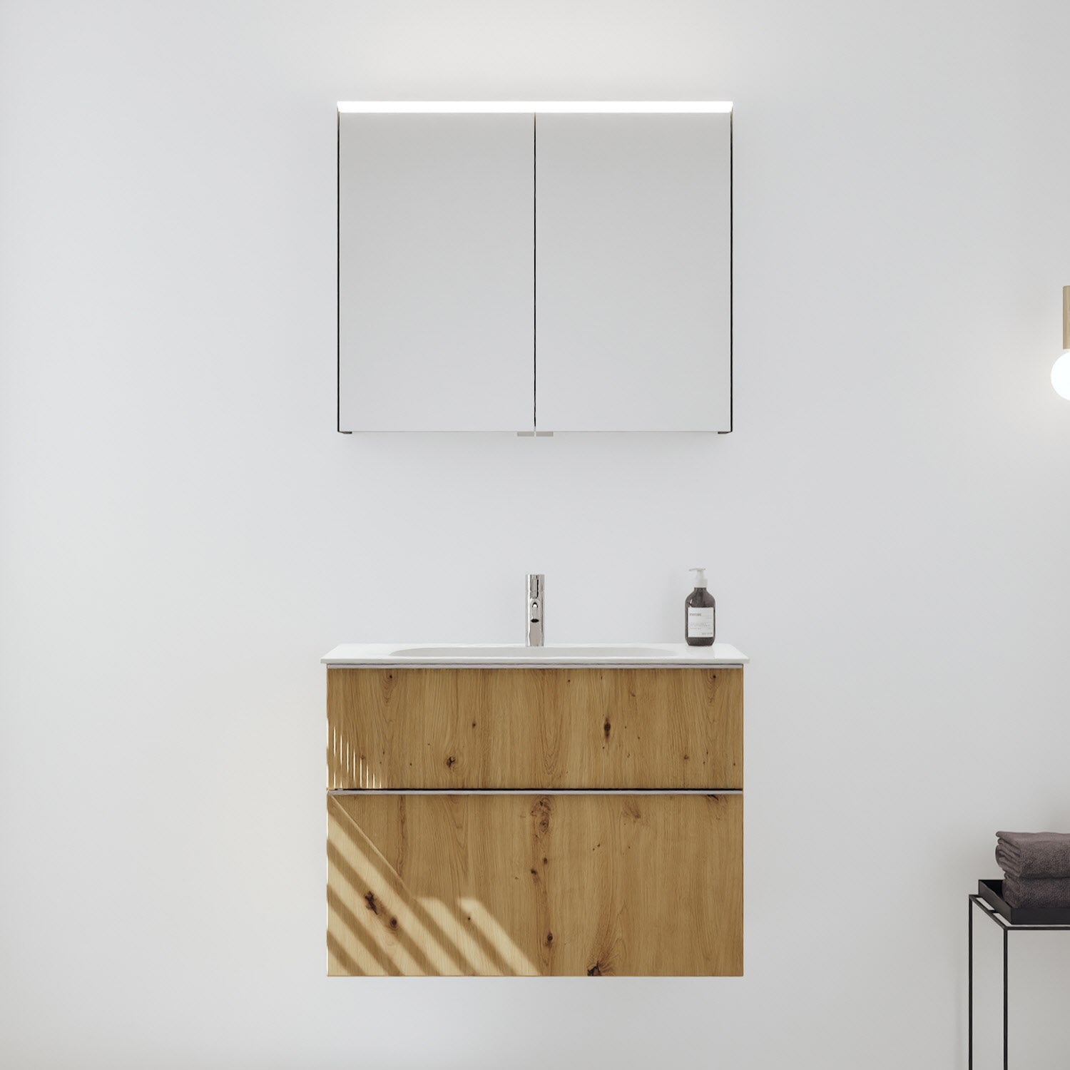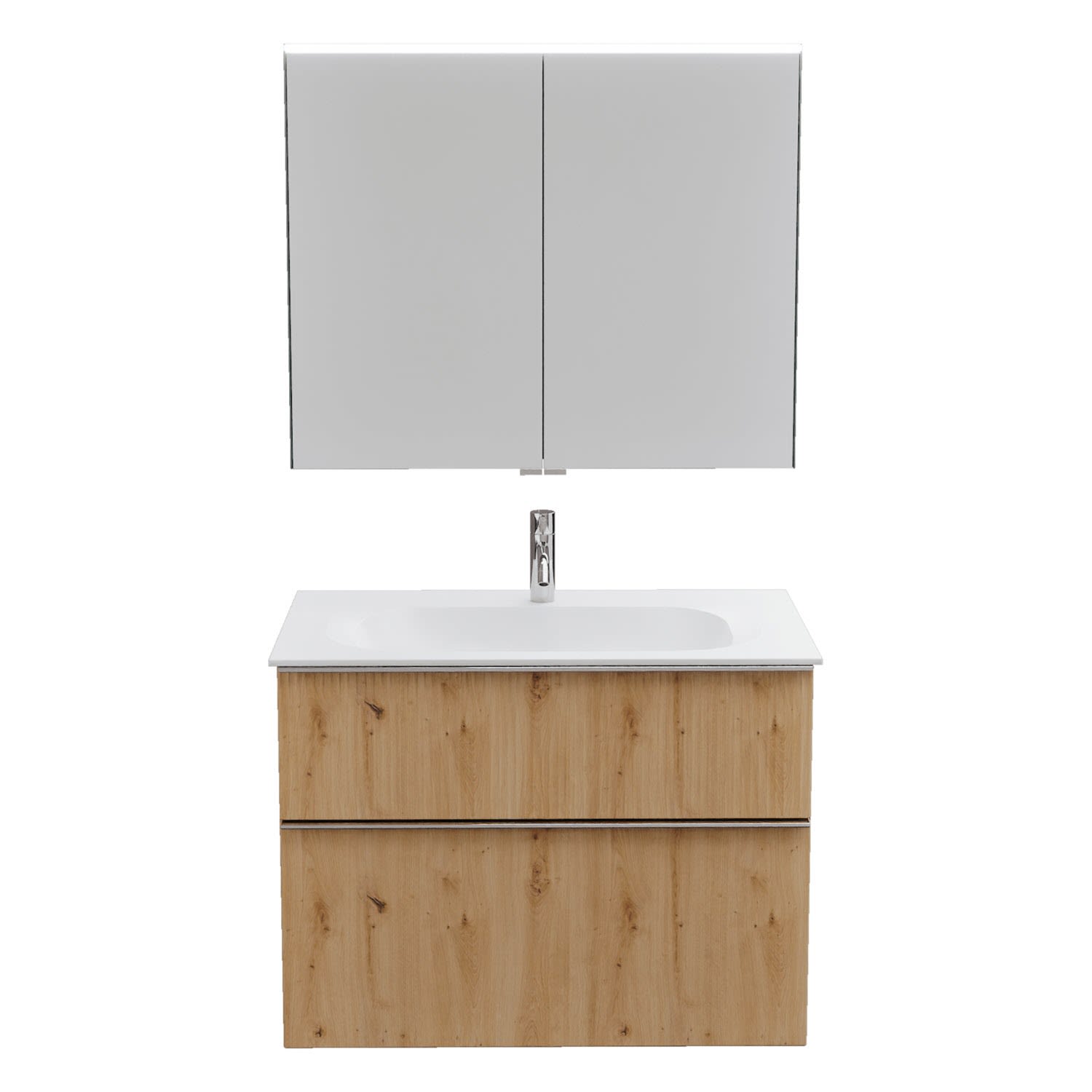 burgbad Fiumo 2.0 Badmöbelset 82 cm mit Waschtisch mit Unterschrank mit Griff G0146 und Spiegelschrank