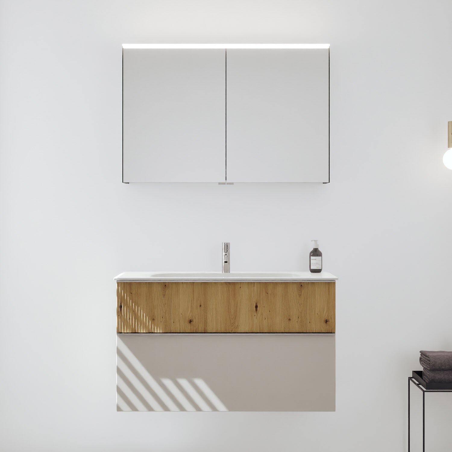 burgbad Fiumo 2.0 Badmöbelset 102 cm mit Waschtisch mit Unterschrank mit Griff G0146 und Spiegelschrank