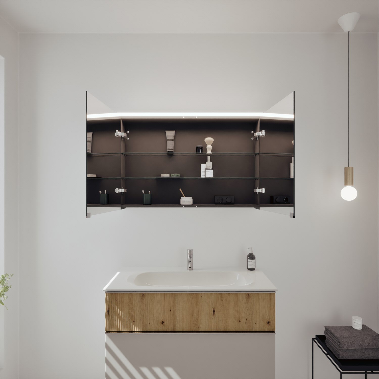 - Spiegelschrank, Waschtischunterschrank, Waschtisch, burgbad cleanFlow, Befestigung außer Stockschrauben