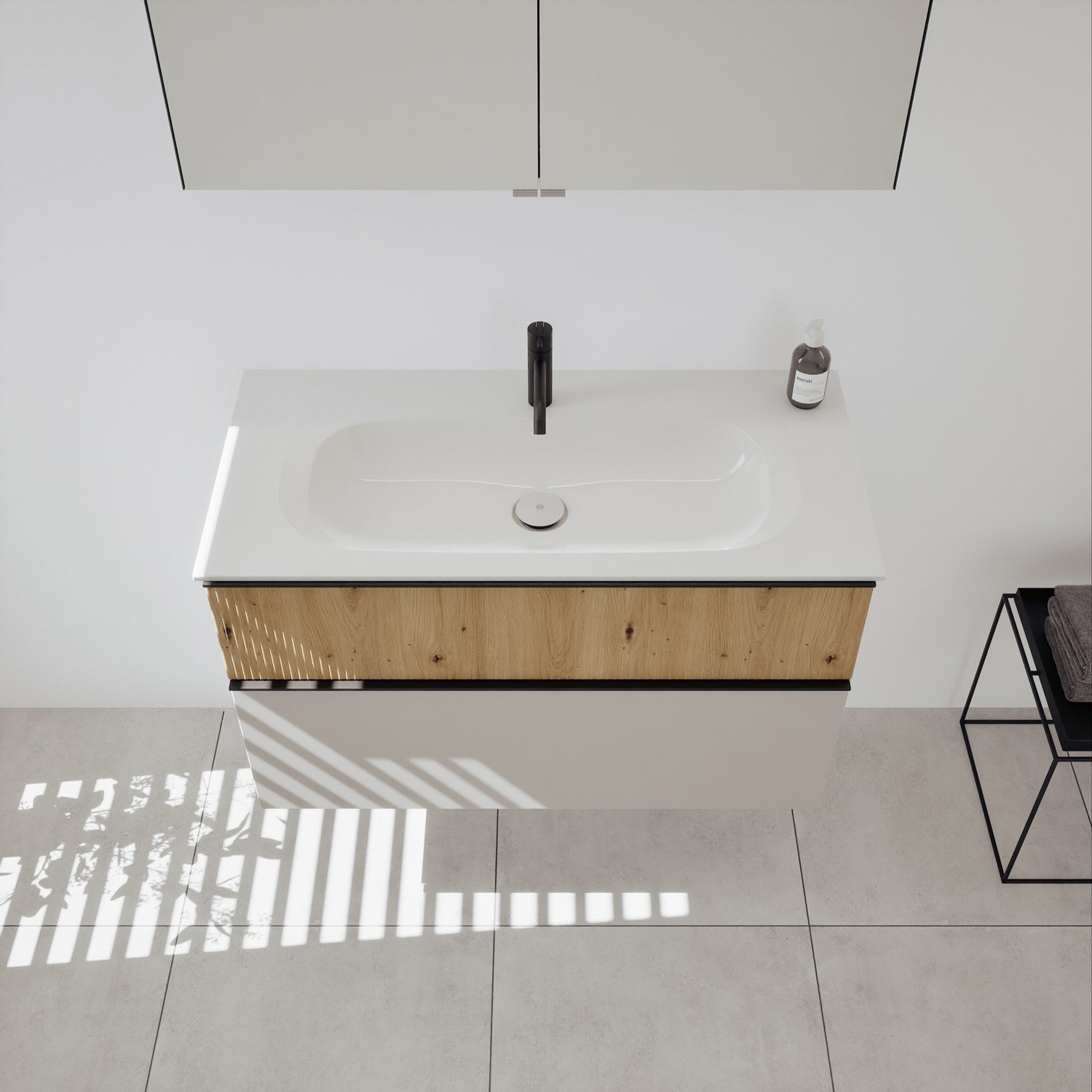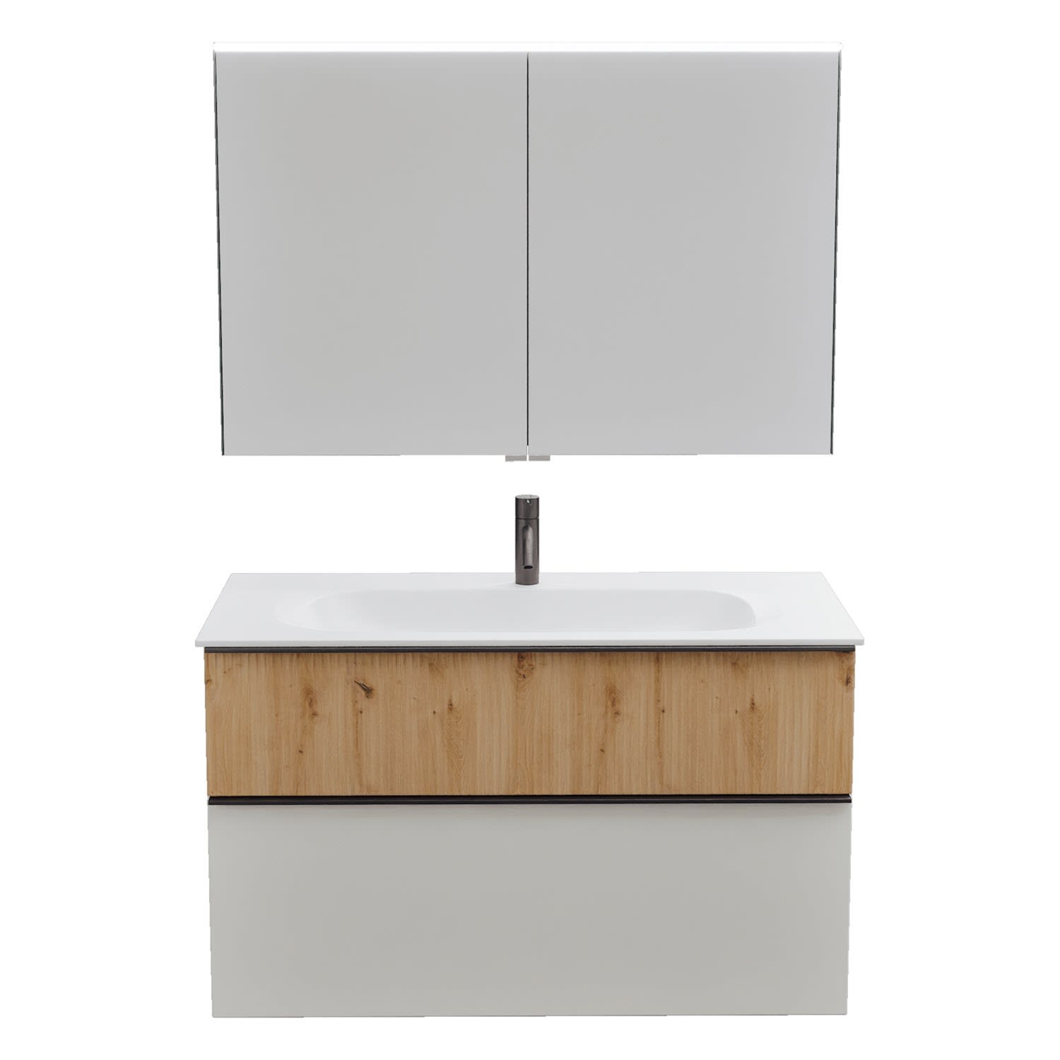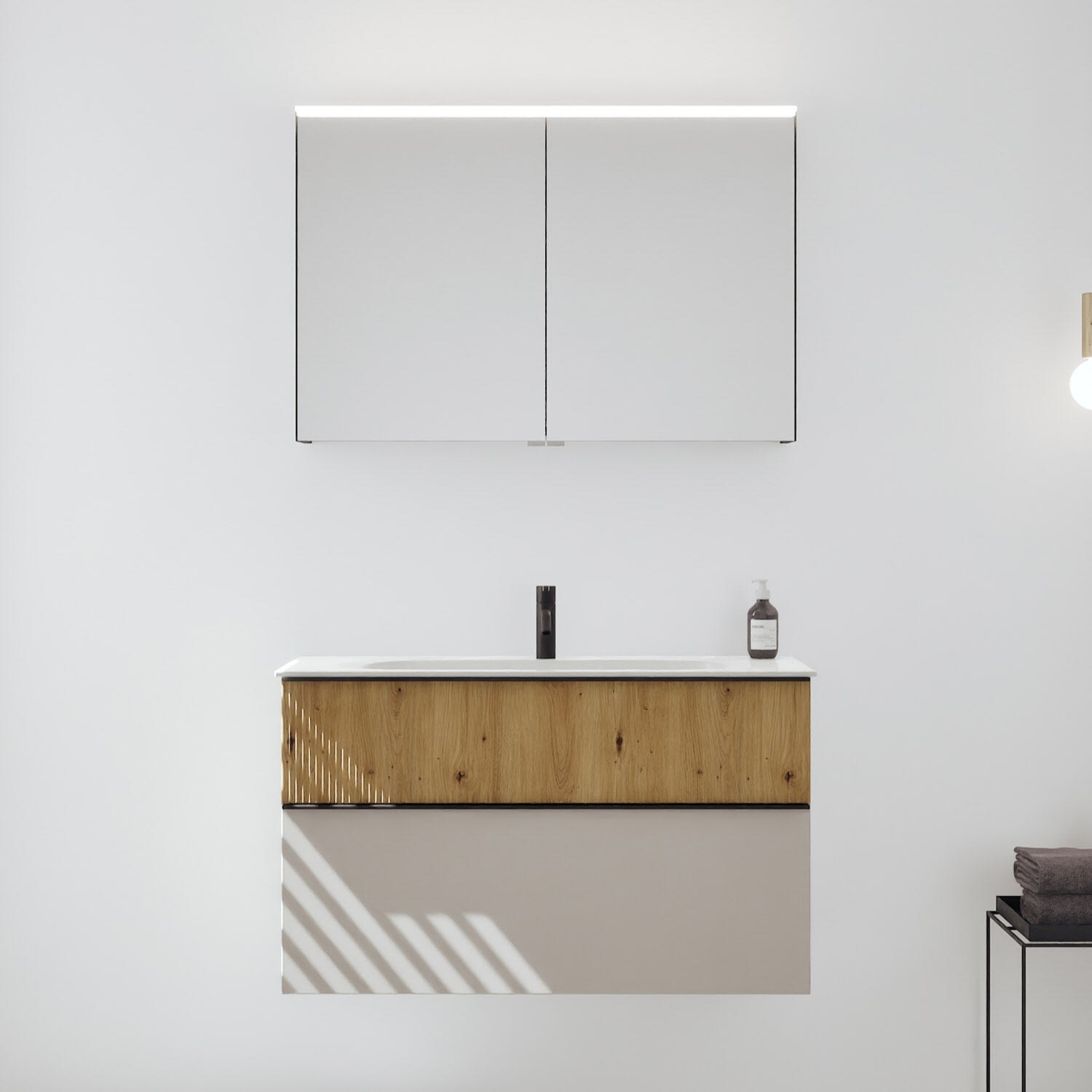burgbad Fiumo 2.0 Badmöbelset 102 cm mit Waschtisch mit Unterschrank mit Griff G0200 und Spiegelschrank