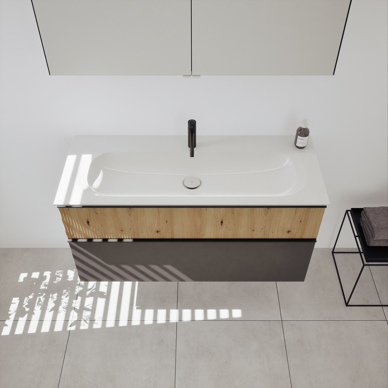 burgbad Fiumo 2.0 Badmöbelset 122 cm mit Waschtisch mit Unterschrank mit Griff G0200 und Spiegelschrank