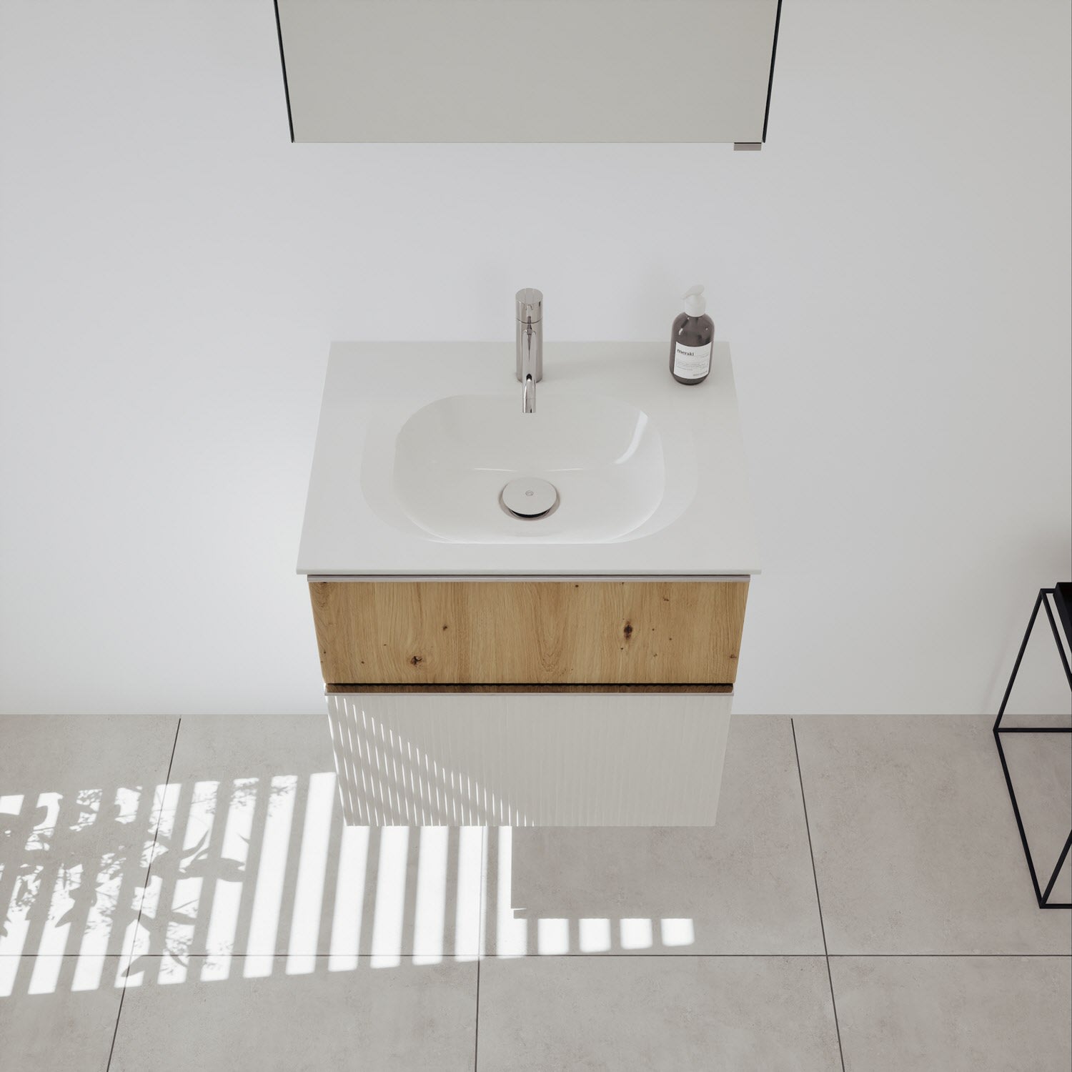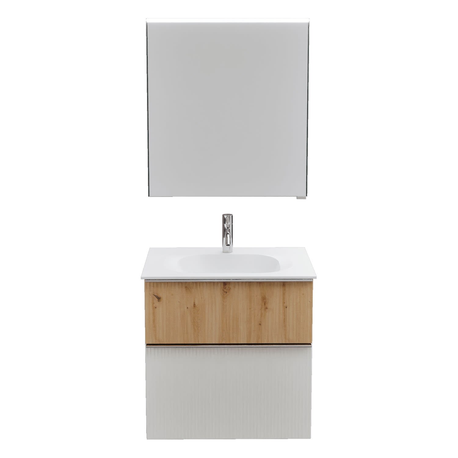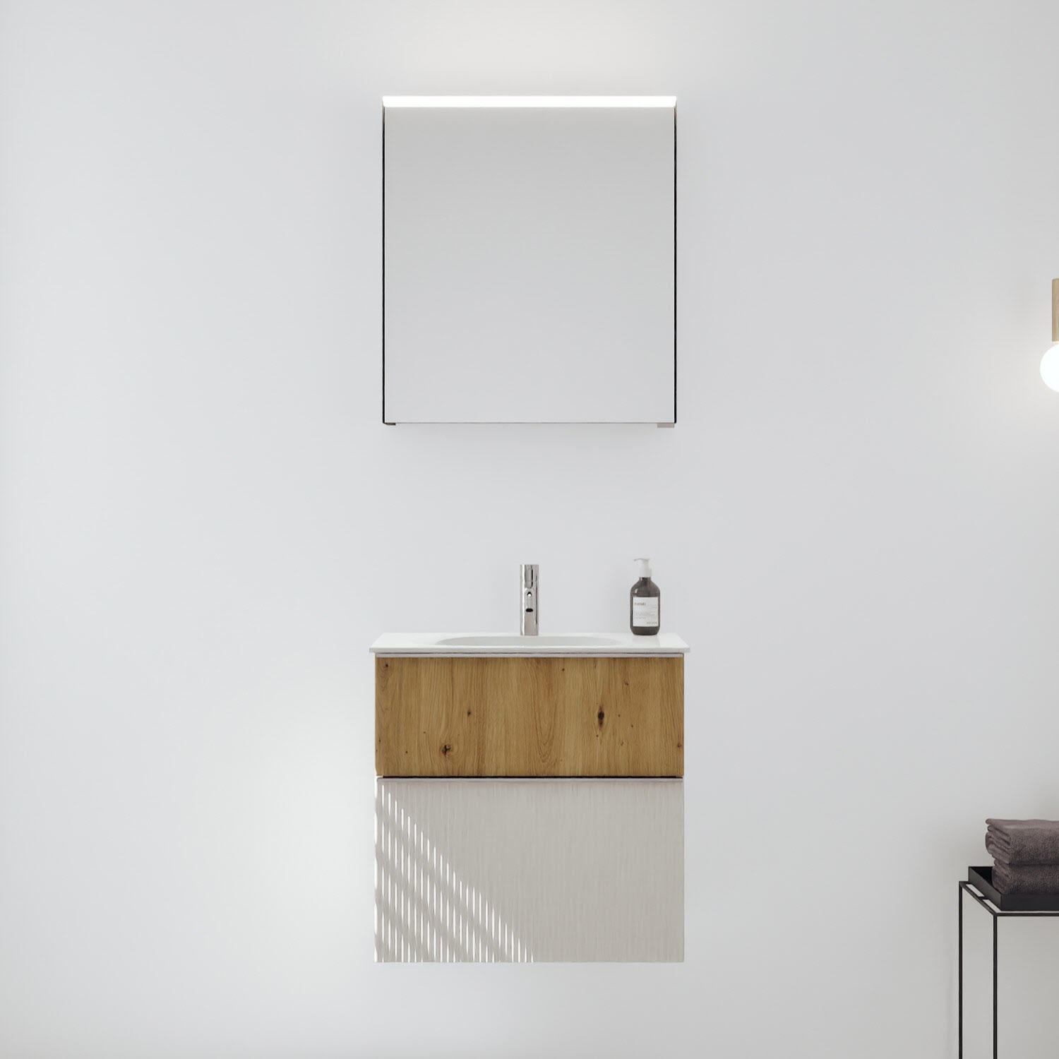 burgbad Fiumo 2.0 Badmöbelset 62 cm mit Waschtisch mit Unterschrank mit Griff G0146 und Spiegelschrank