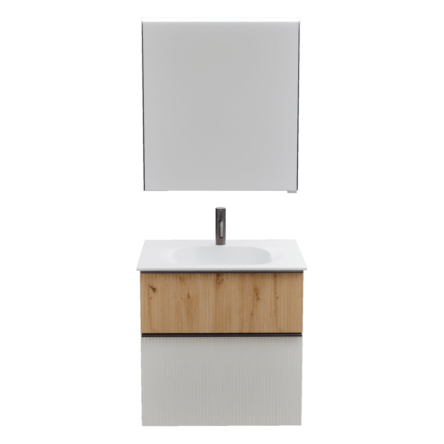 burgbad Fiumo 2.0 Badmöbelset 62 cm mit Waschtisch mit Unterschrank mit Griff G0200 und Spiegelschrank