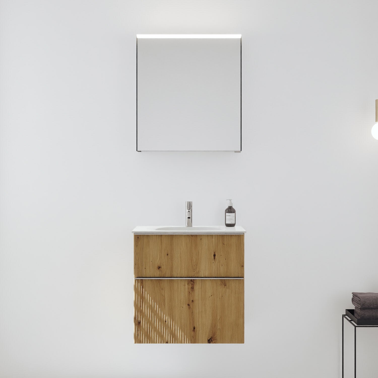 burgbad Fiumo 2.0 Badmöbelset 62 cm mit Waschtisch mit Unterschrank mit Griff G0146 und Spiegelschrank