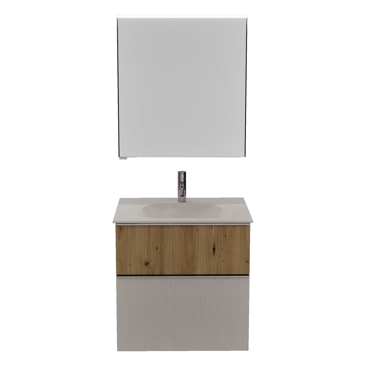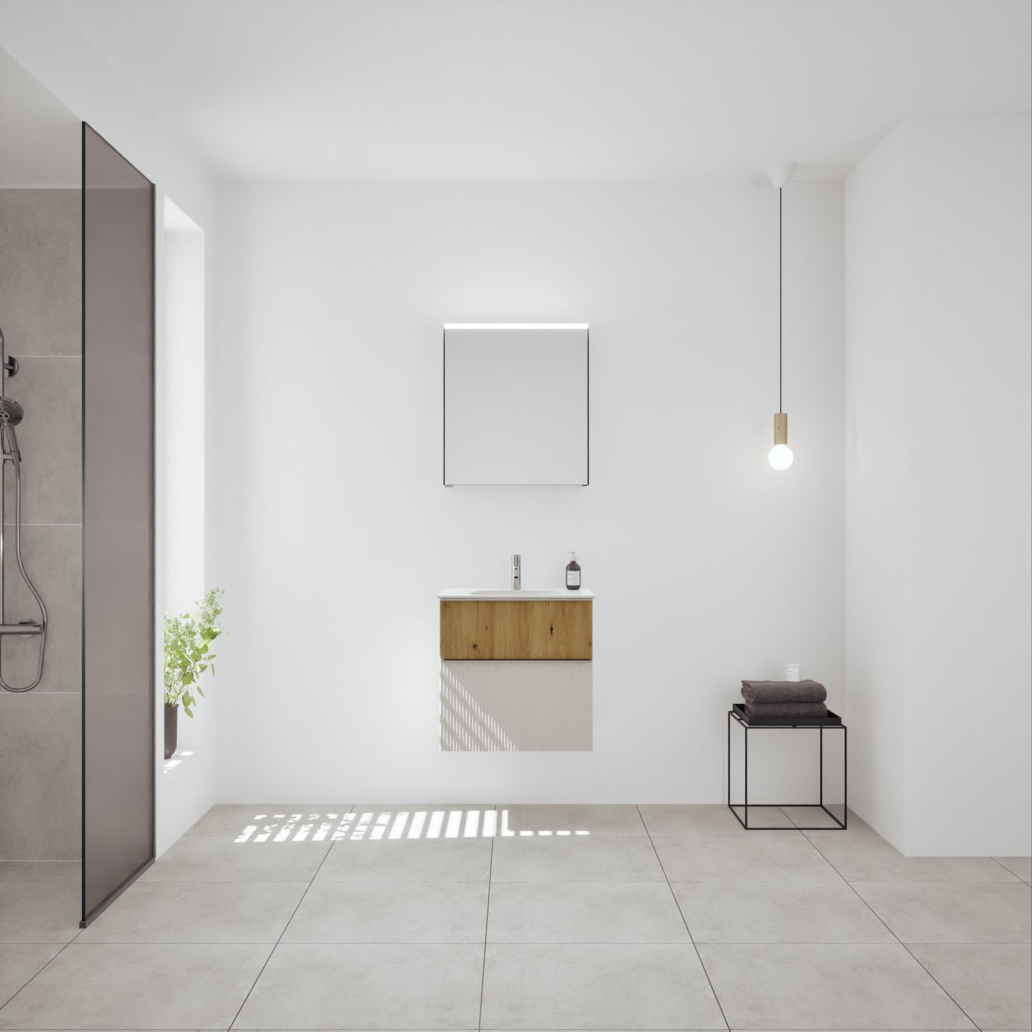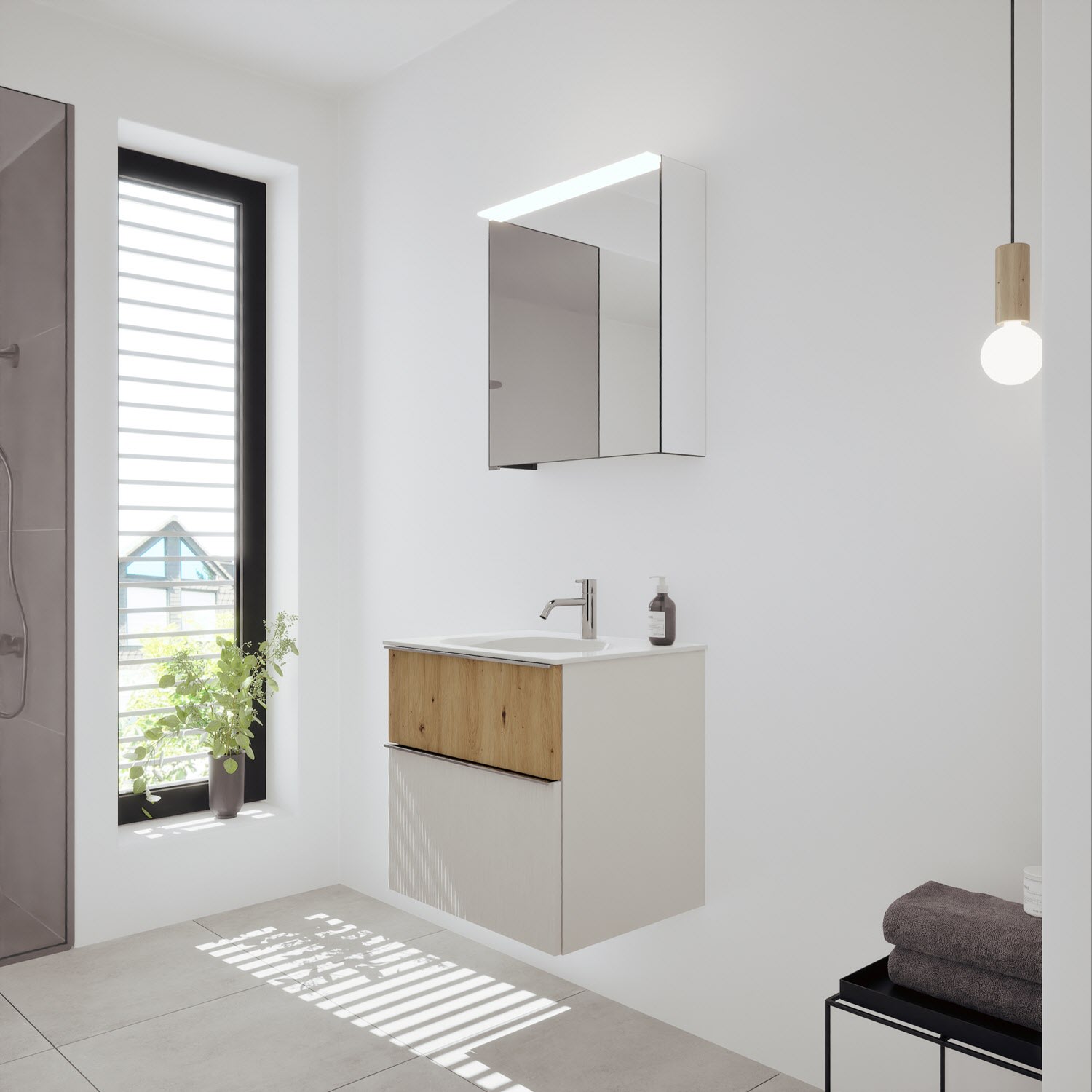 burgbad Fiumo 2.0 Badmöbelset 62 cm mit Waschtisch mit Unterschrank mit Griff G0146 und Spiegelschrank
