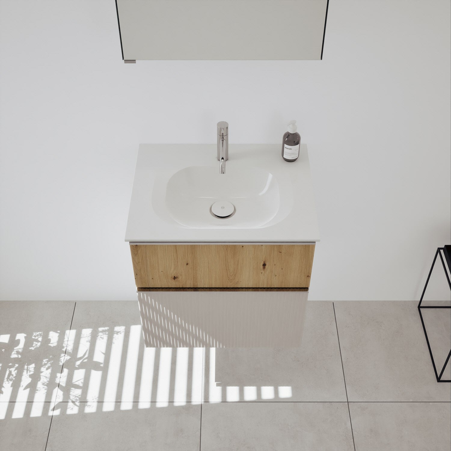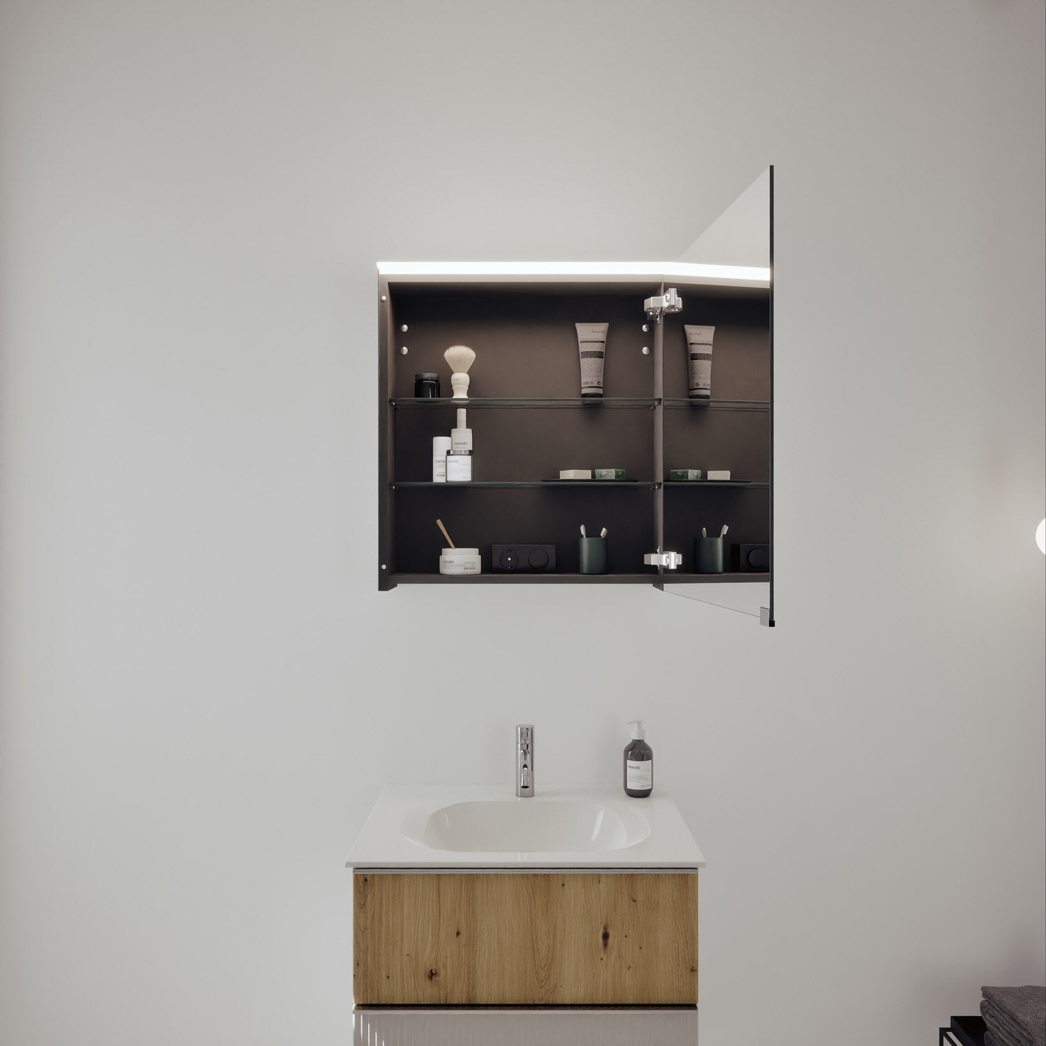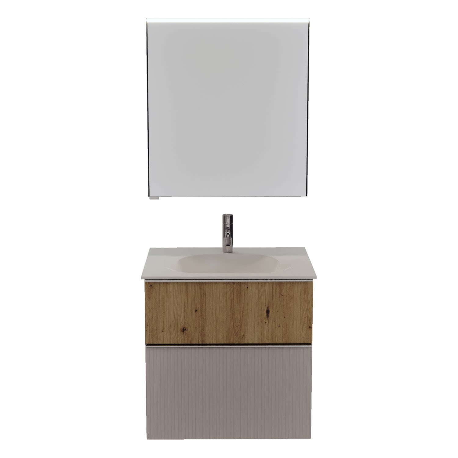 burgbad Fiumo 2.0 Badmöbelset 62 cm mit Waschtisch mit Unterschrank mit Griff G0146 und Spiegelschrank