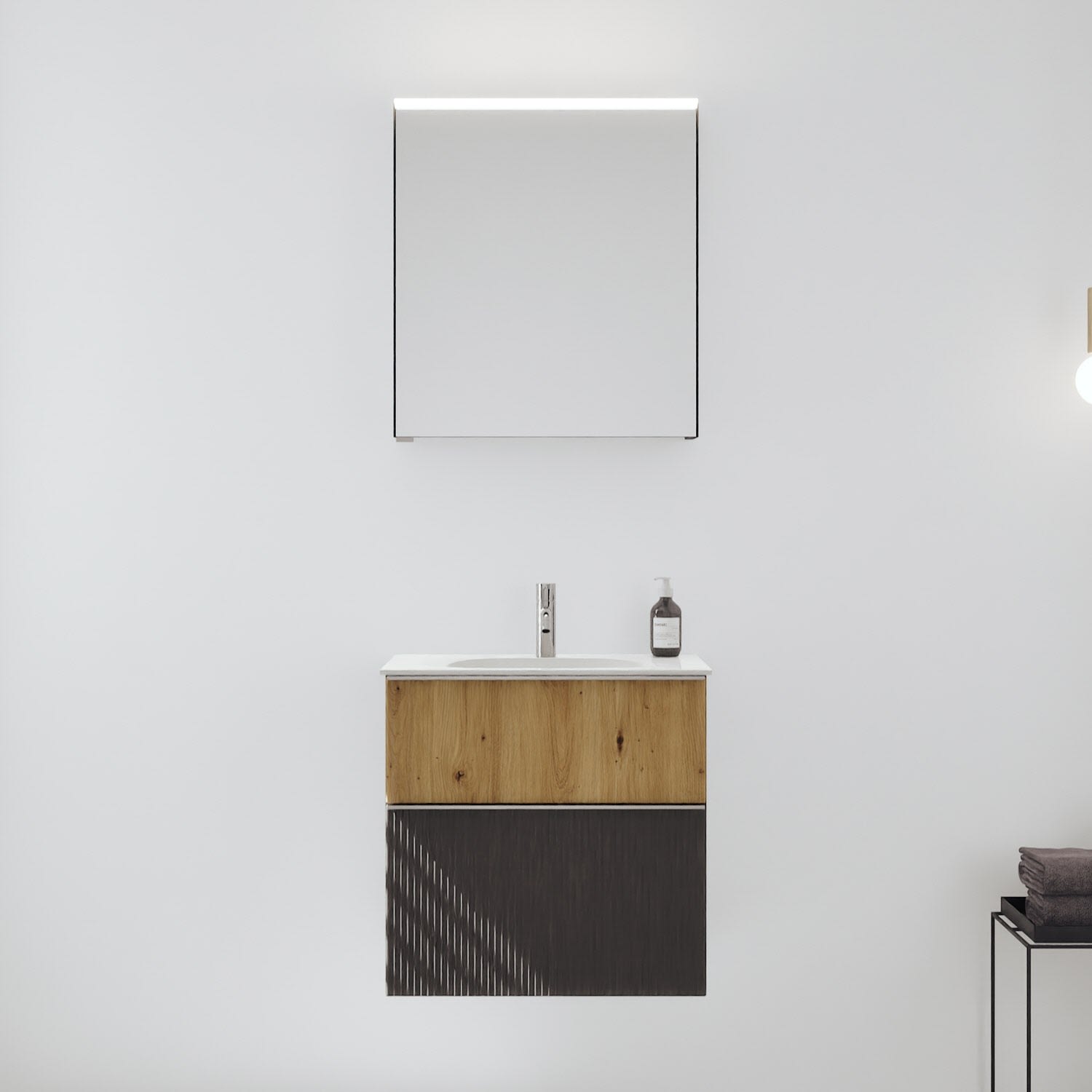 burgbad Fiumo 2.0 Badmöbelset 62 cm mit Waschtisch mit Unterschrank mit Griff G0146 und Spiegelschrank