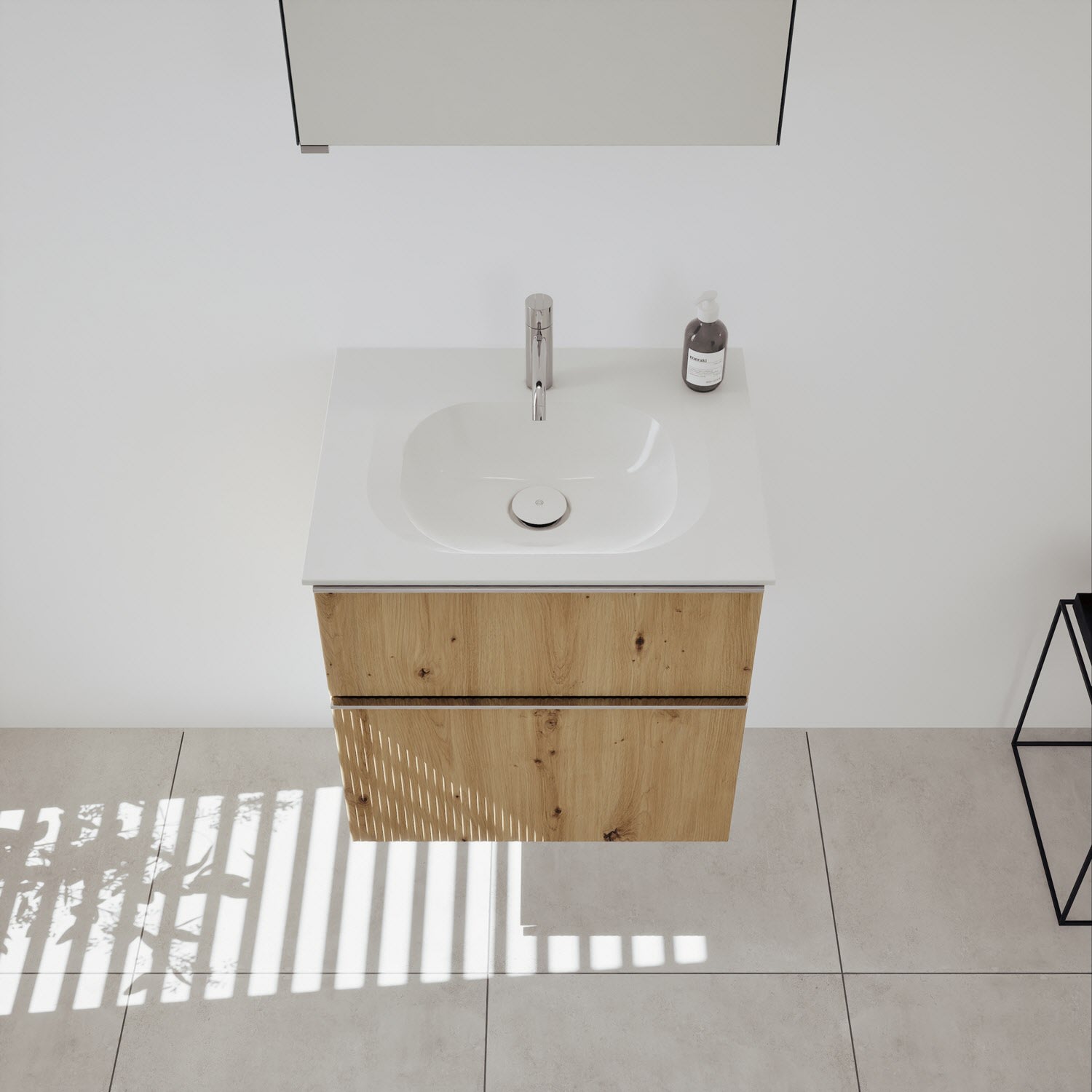burgbad Fiumo 2.0 Badmöbelset 62 cm mit Waschtisch mit Unterschrank mit Griff G0146 und Spiegelschrank
