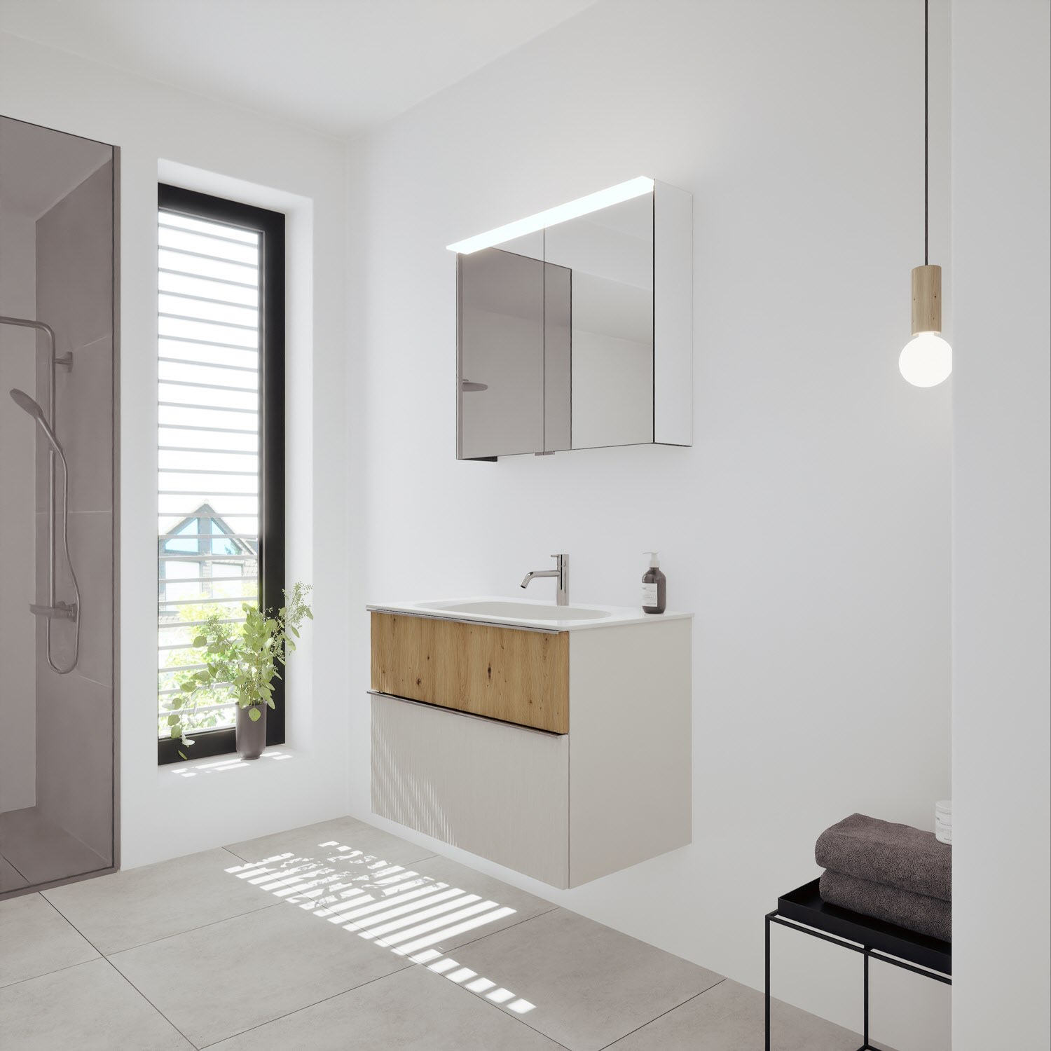 burgbad Fiumo 2.0 Badmöbelset 82 cm mit Waschtisch mit Unterschrank mit Griff G0146 und Spiegelschrank