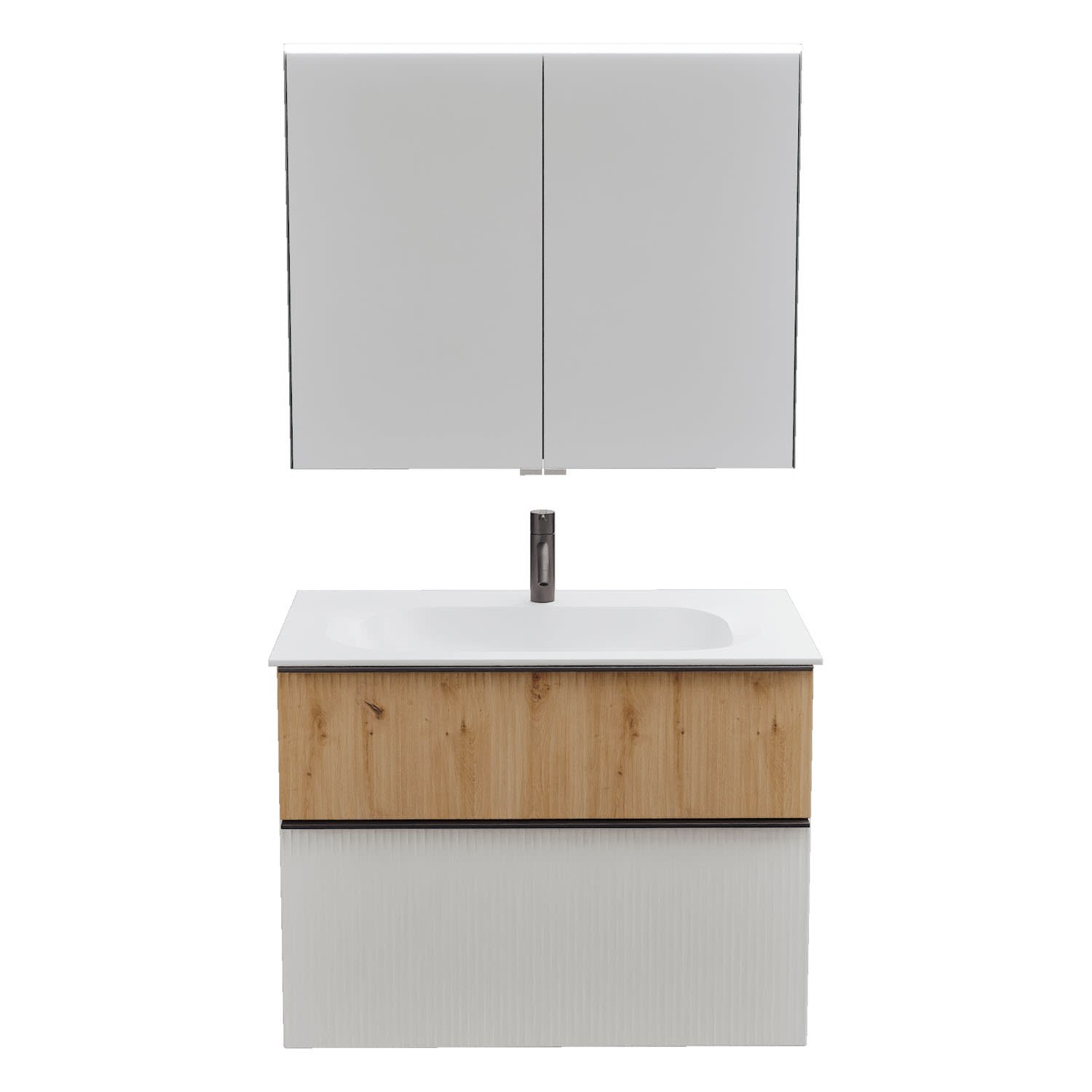 burgbad Fiumo 2.0 Badmöbelset 82 cm mit Waschtisch mit Unterschrank mit Griff G0200 und Spiegelschrank