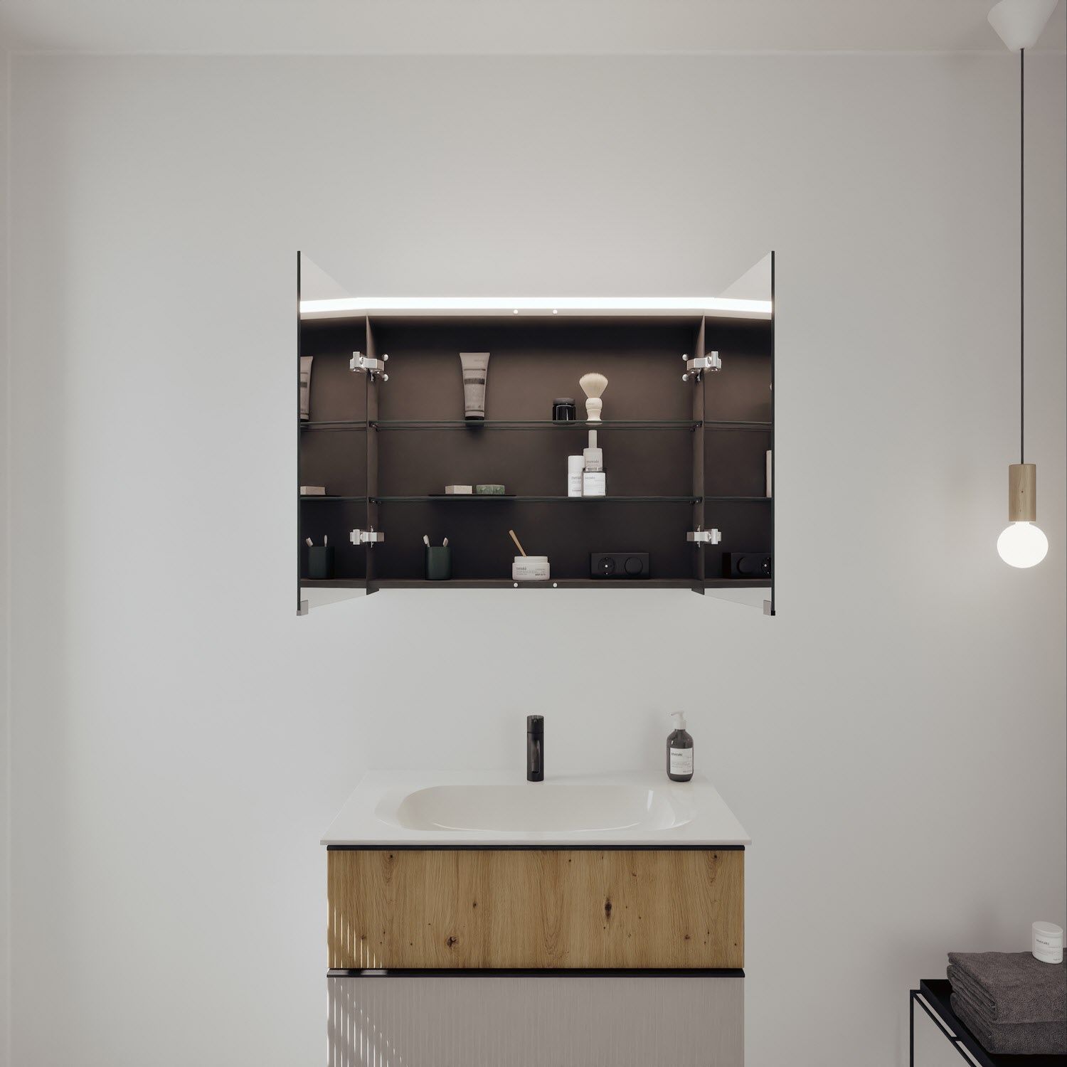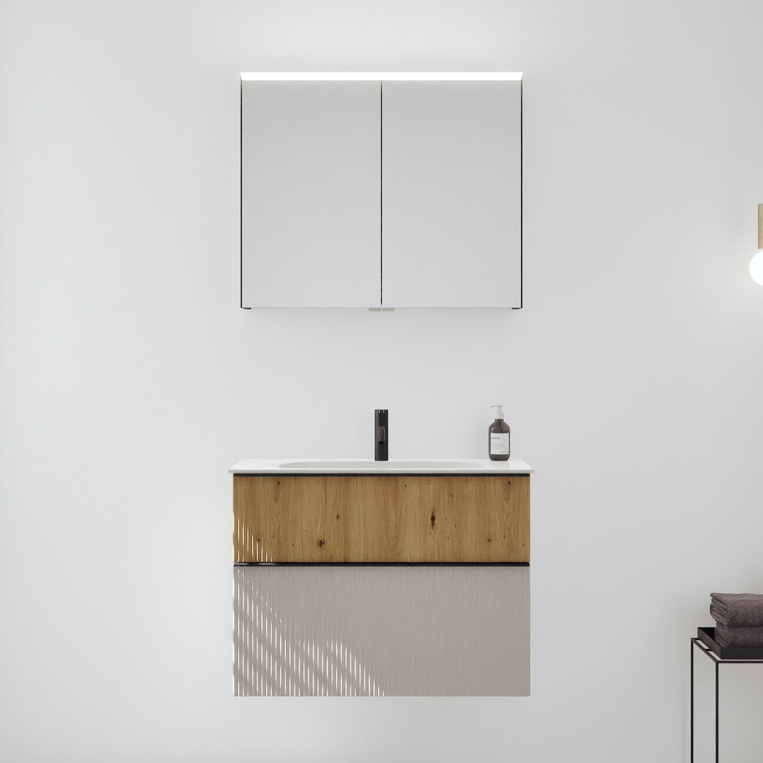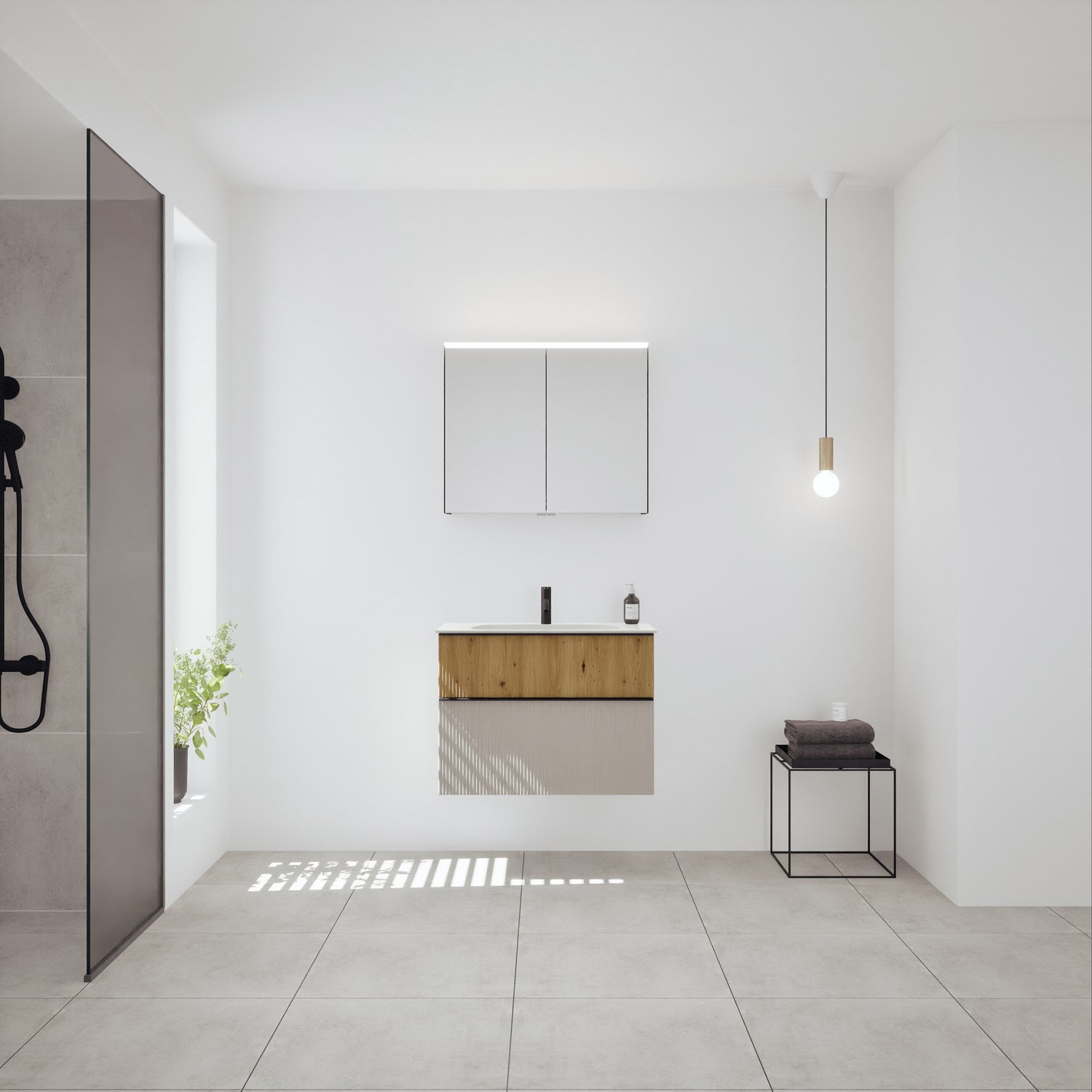 burgbad Fiumo 2.0 Badmöbelset 82 cm mit Waschtisch mit Unterschrank mit Griff G0200 und Spiegelschrank