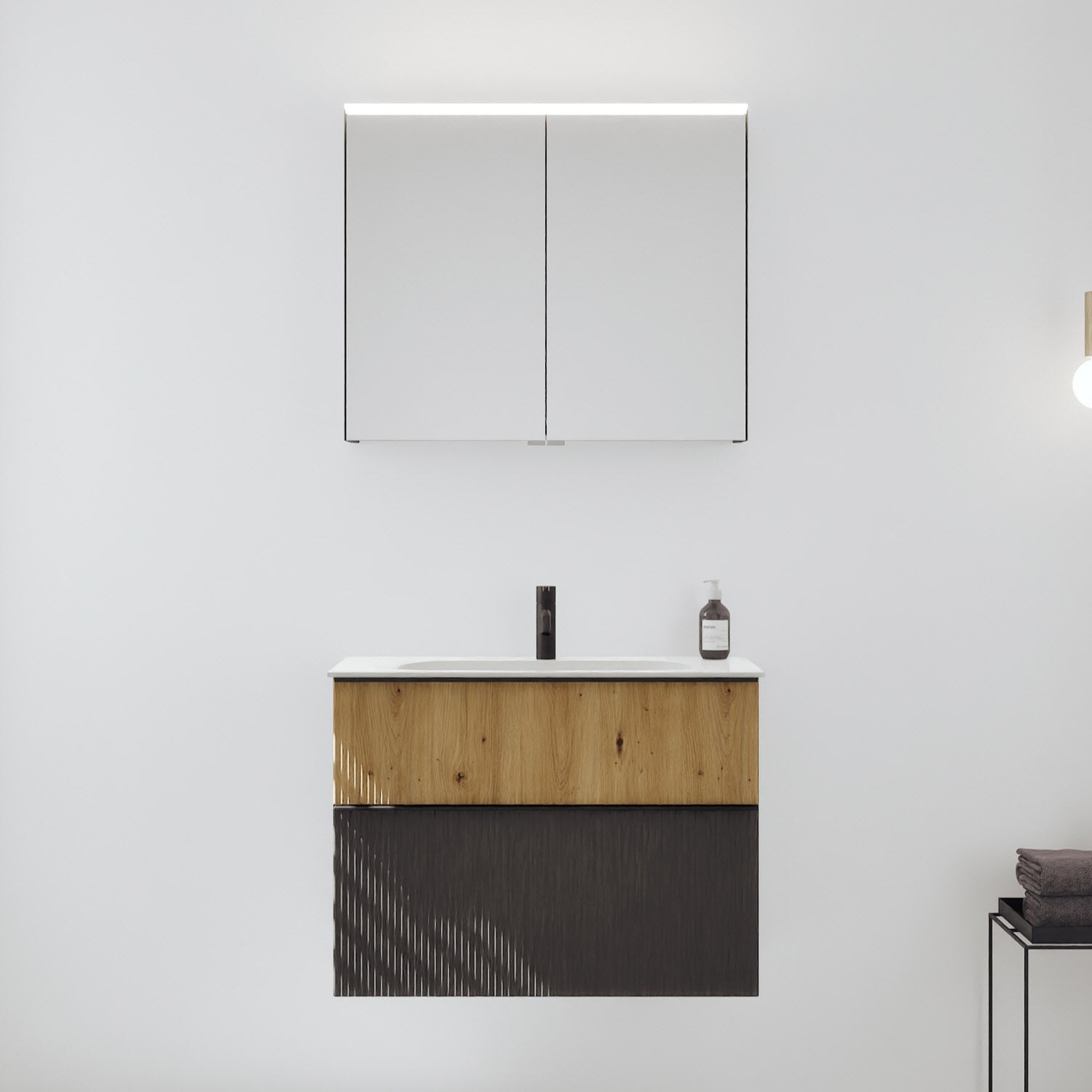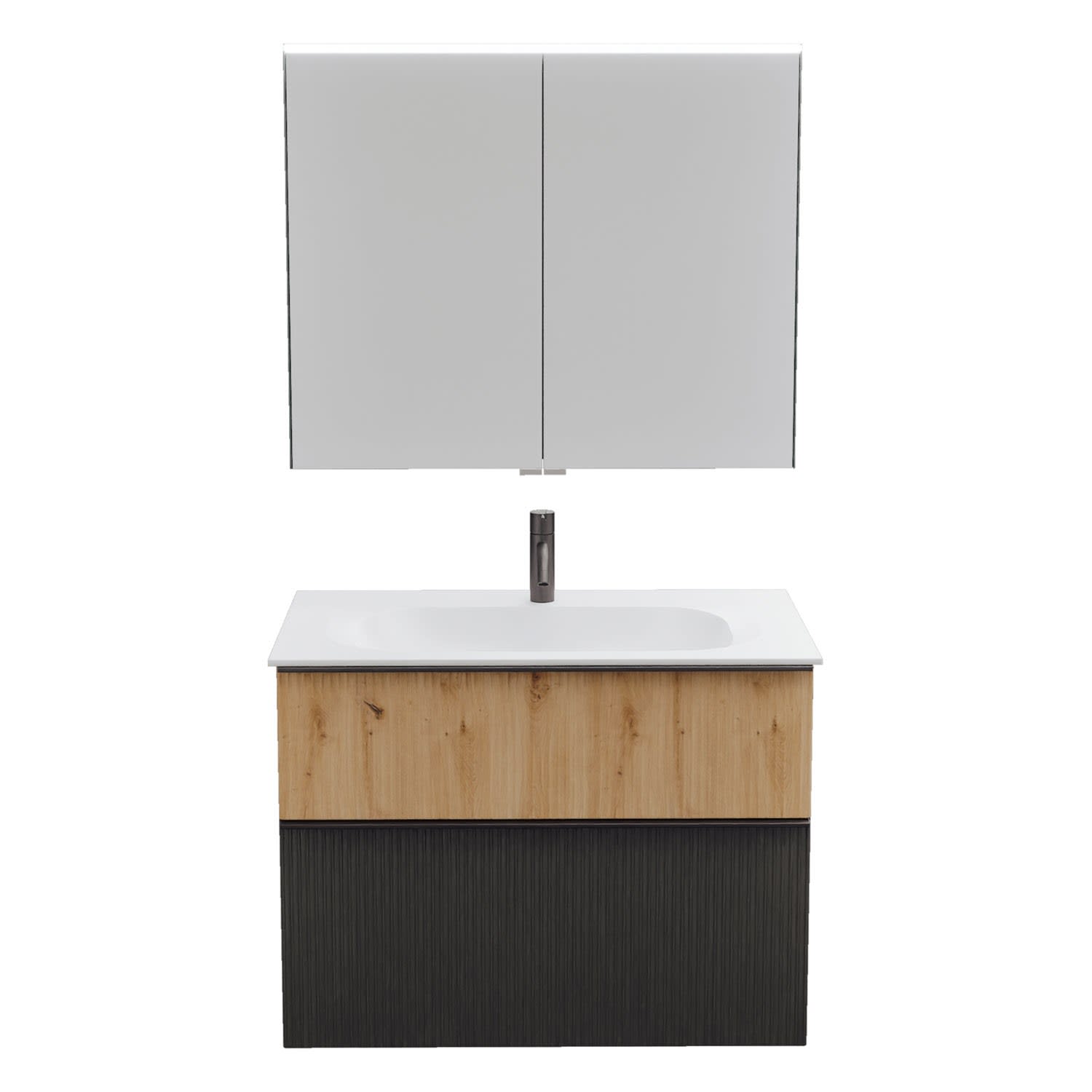 burgbad Fiumo 2.0 Badmöbelset 82 cm mit Waschtisch mit Unterschrank mit Griff G0200 und Spiegelschrank