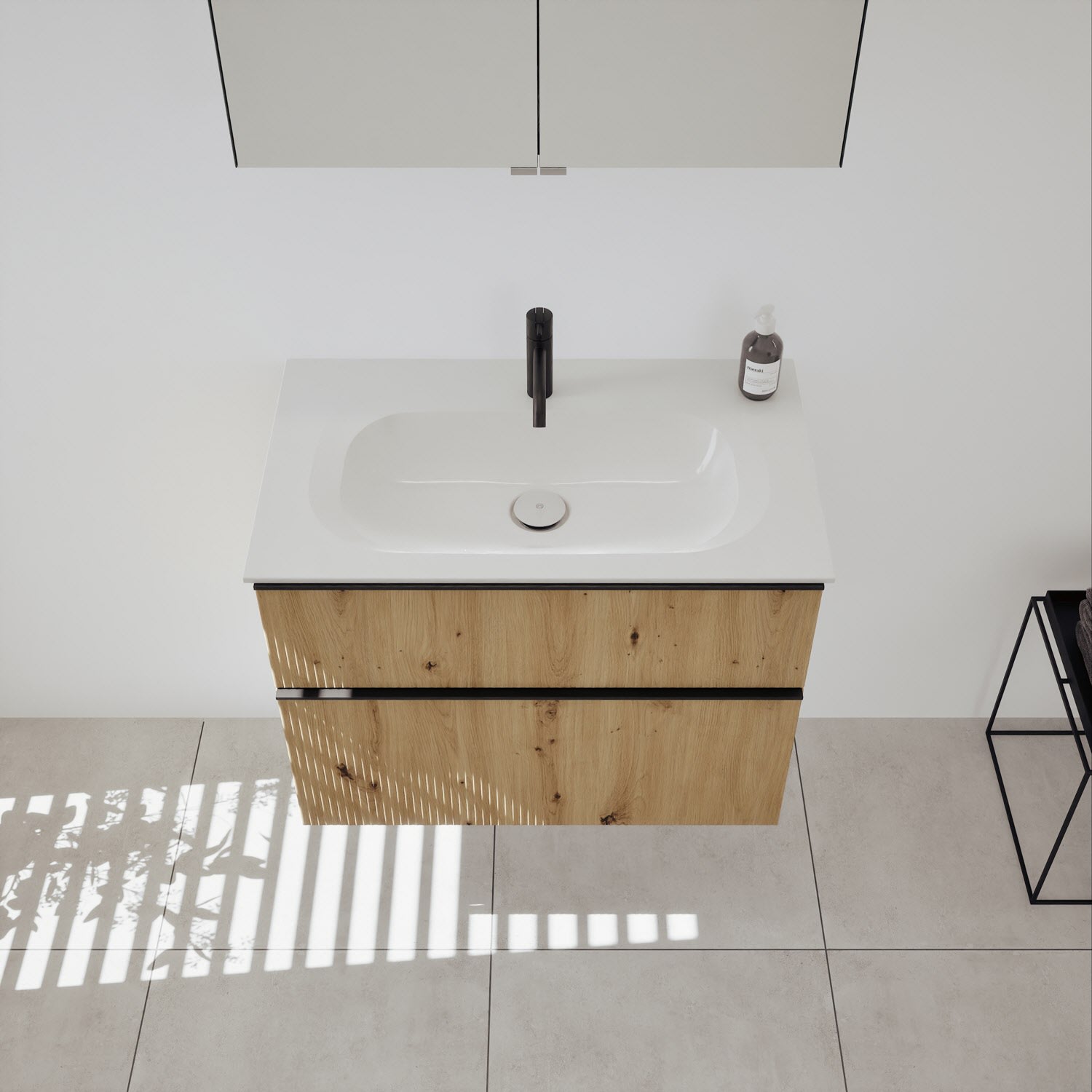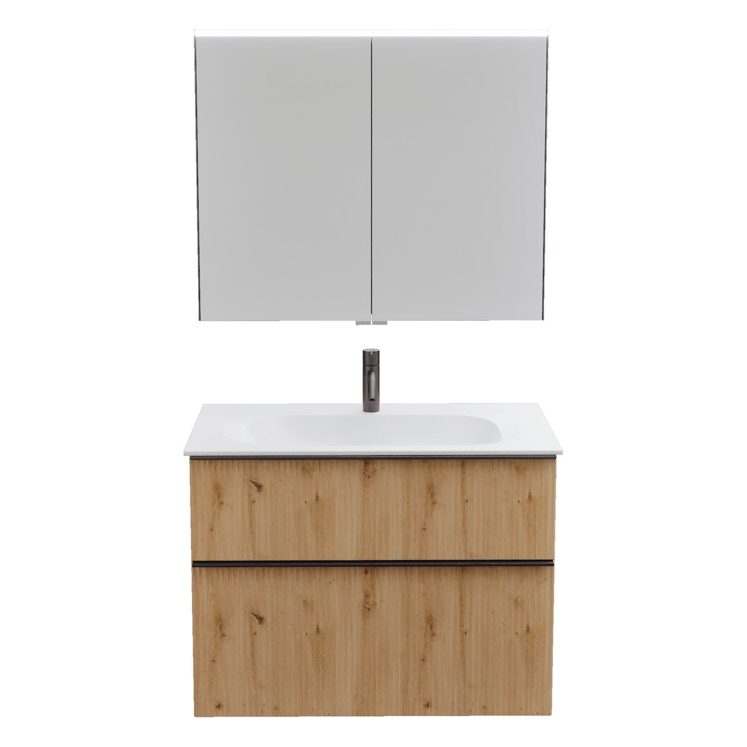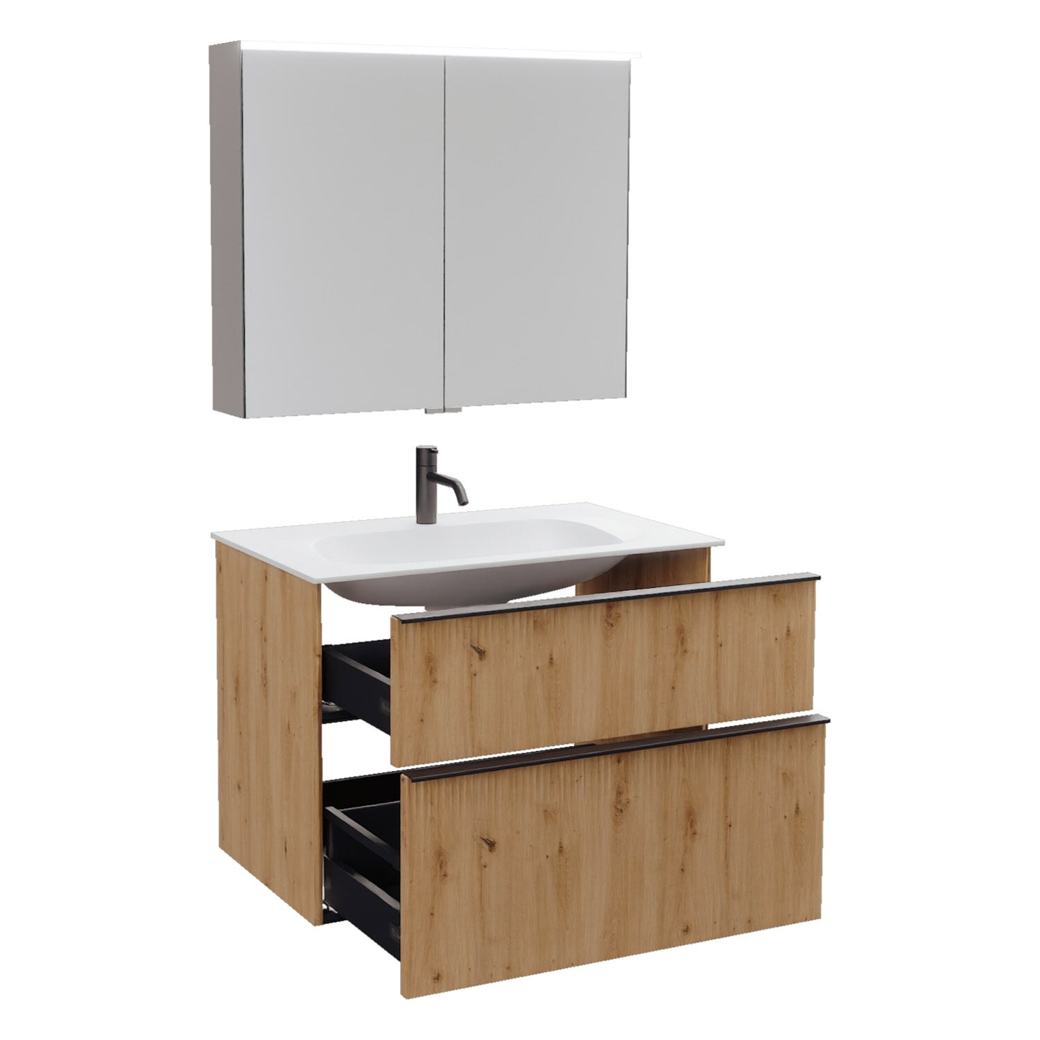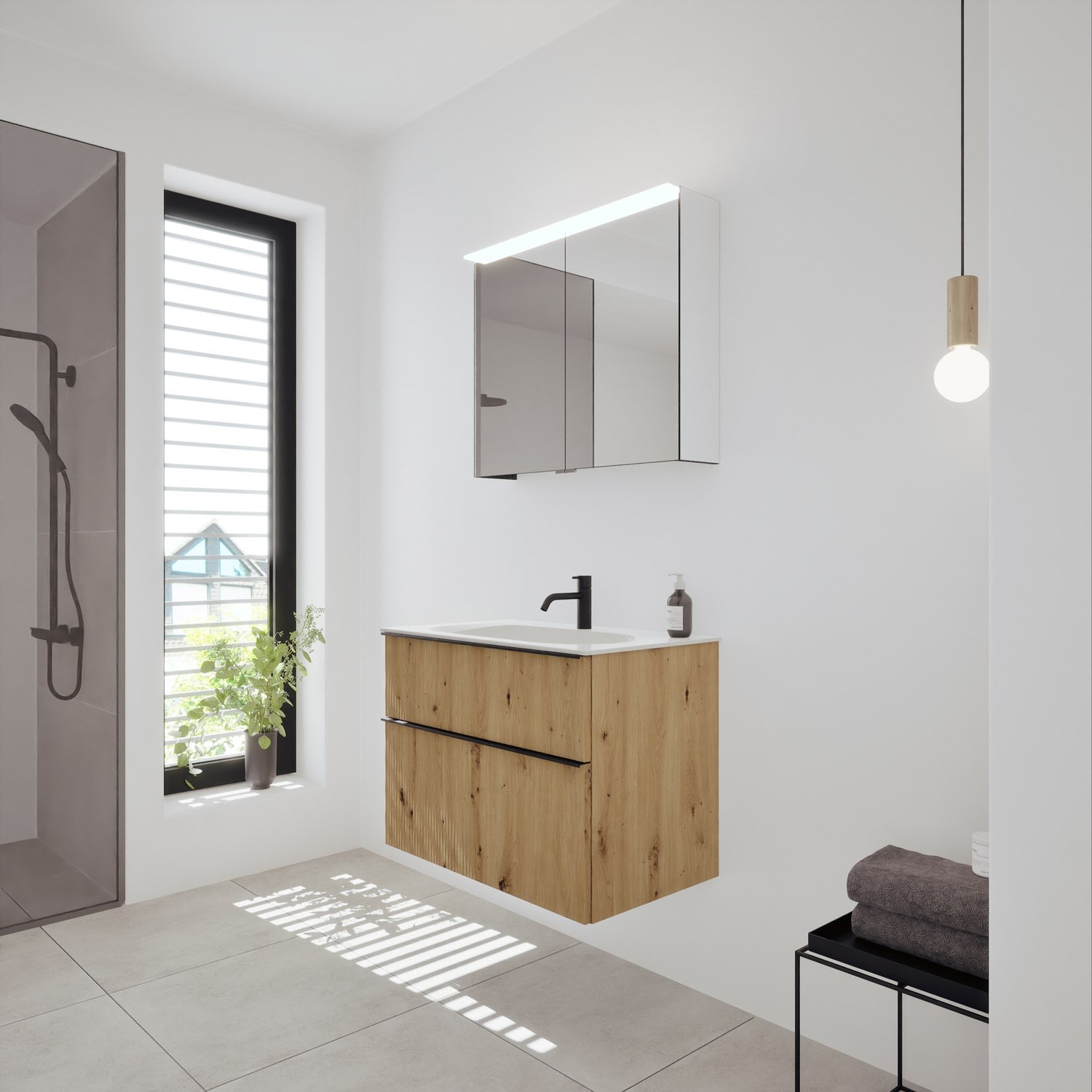 burgbad Fiumo 2.0 Badmöbelset 82 cm mit Waschtisch mit Unterschrank mit Griff G0200 und Spiegelschrank