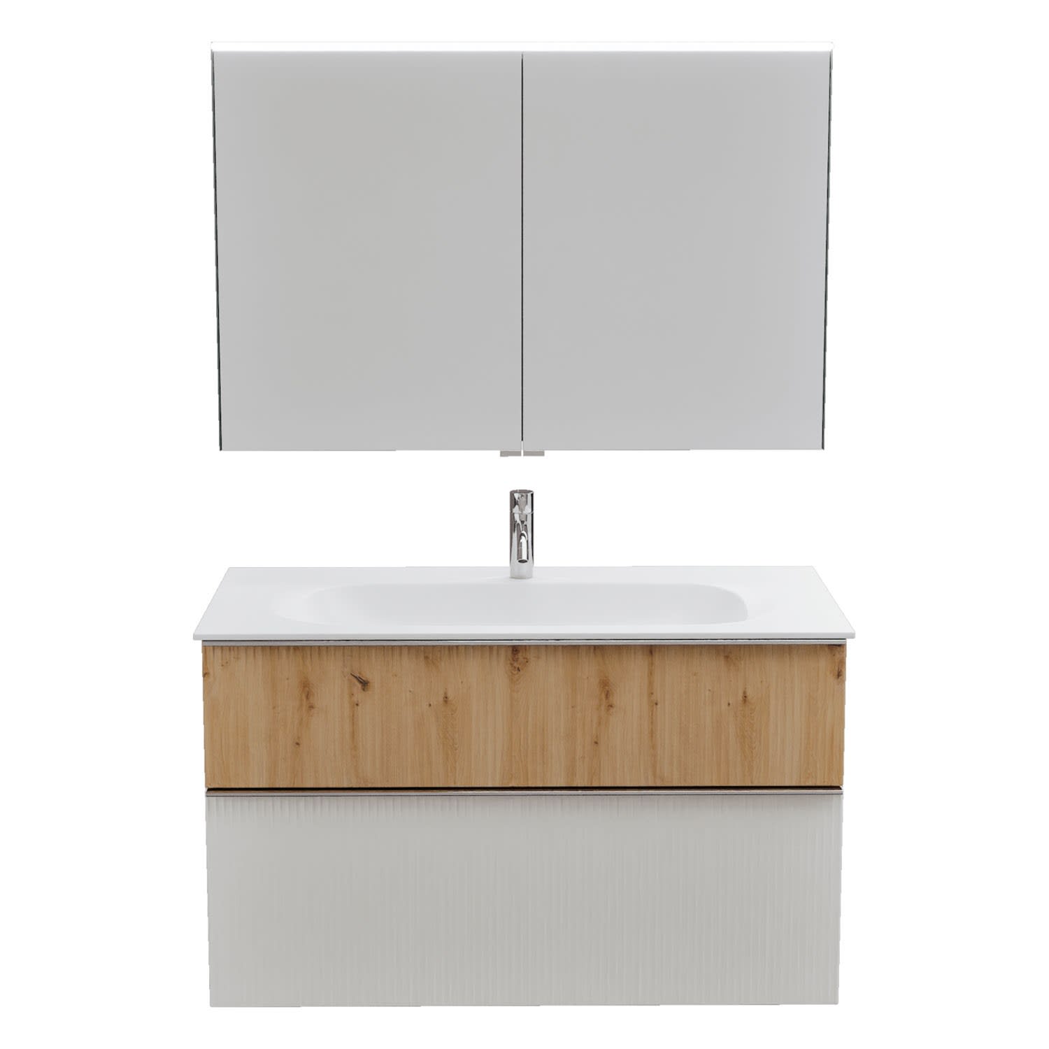 burgbad Fiumo 2.0 Badmöbelset 102 cm mit Waschtisch mit Unterschrank mit Griff G0146 und Spiegelschrank