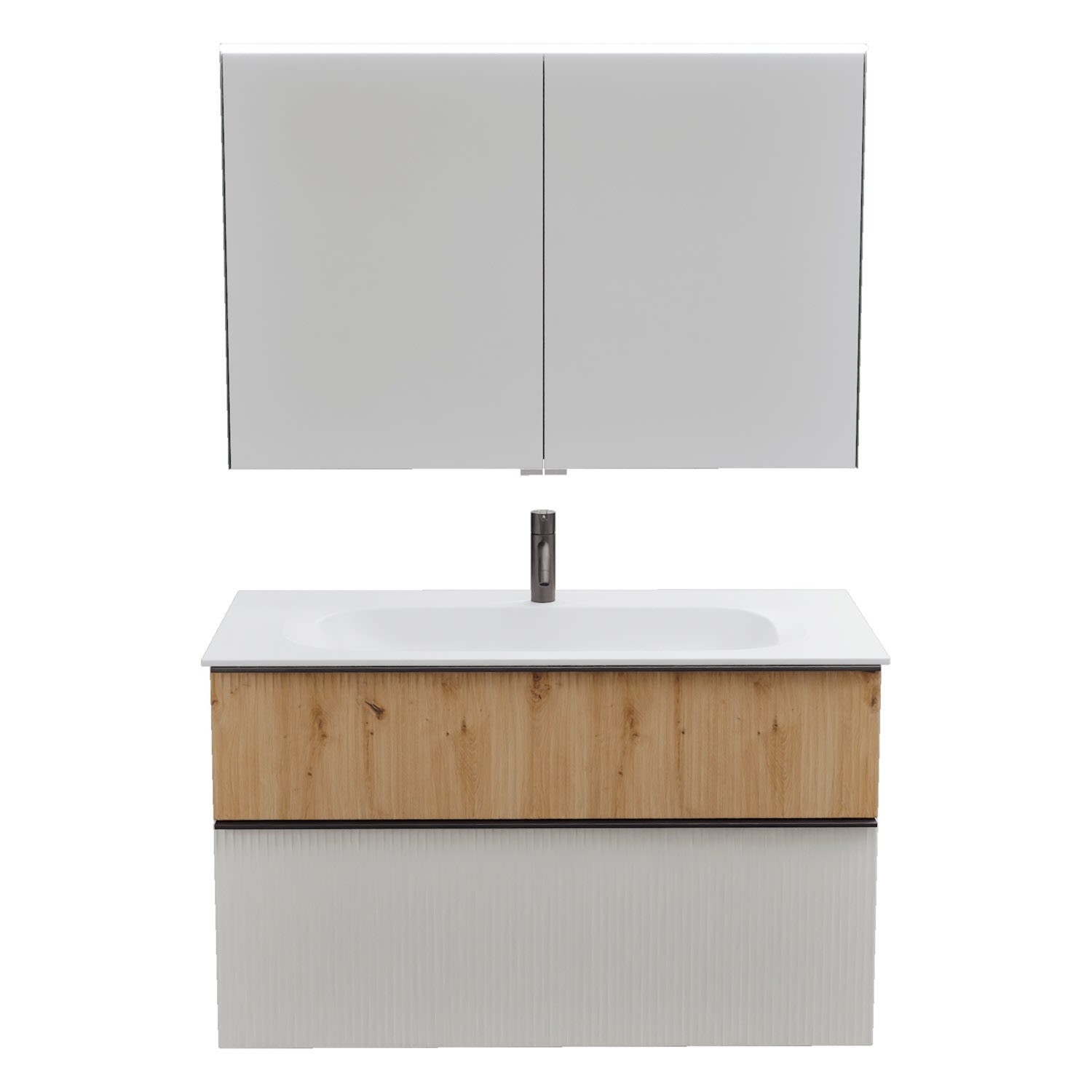 burgbad Fiumo 2.0 Badmöbelset 102 cm mit Waschtisch mit Unterschrank mit Griff G0200 und Spiegelschrank