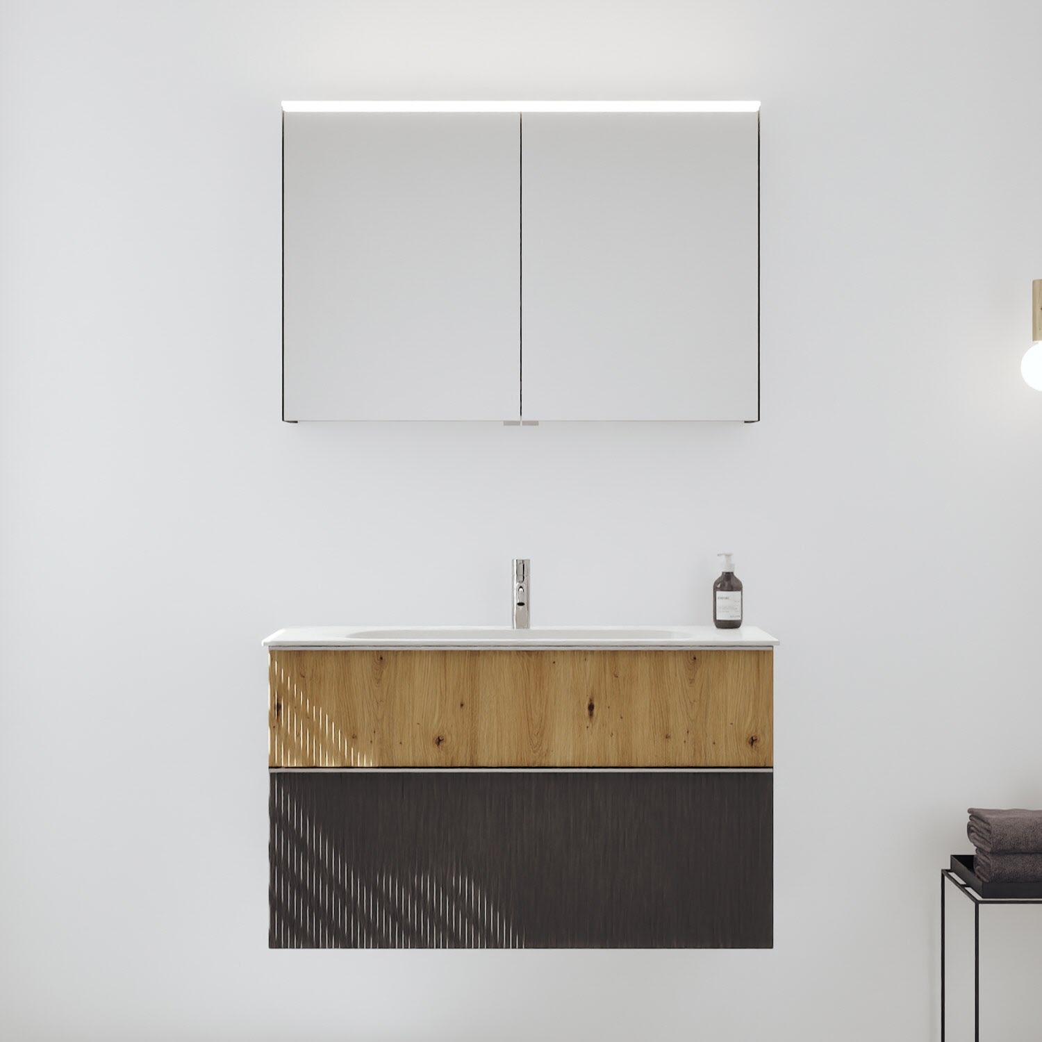 burgbad Fiumo 2.0 Badmöbelset 102 cm mit Waschtisch mit Unterschrank mit Griff G0146 und Spiegelschrank