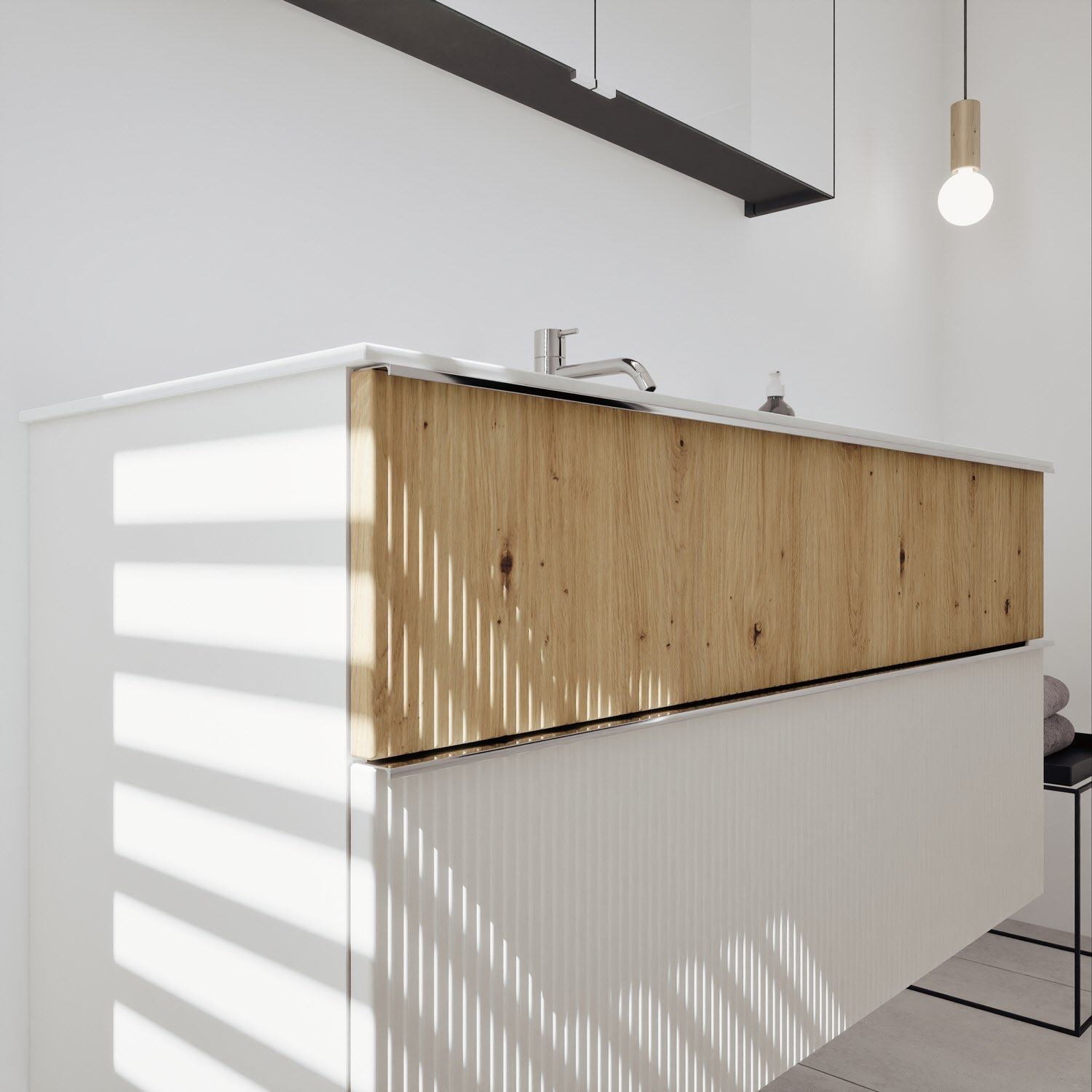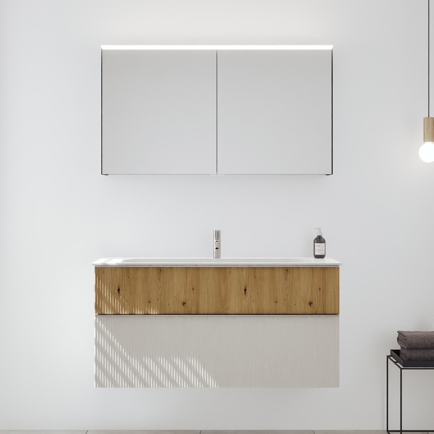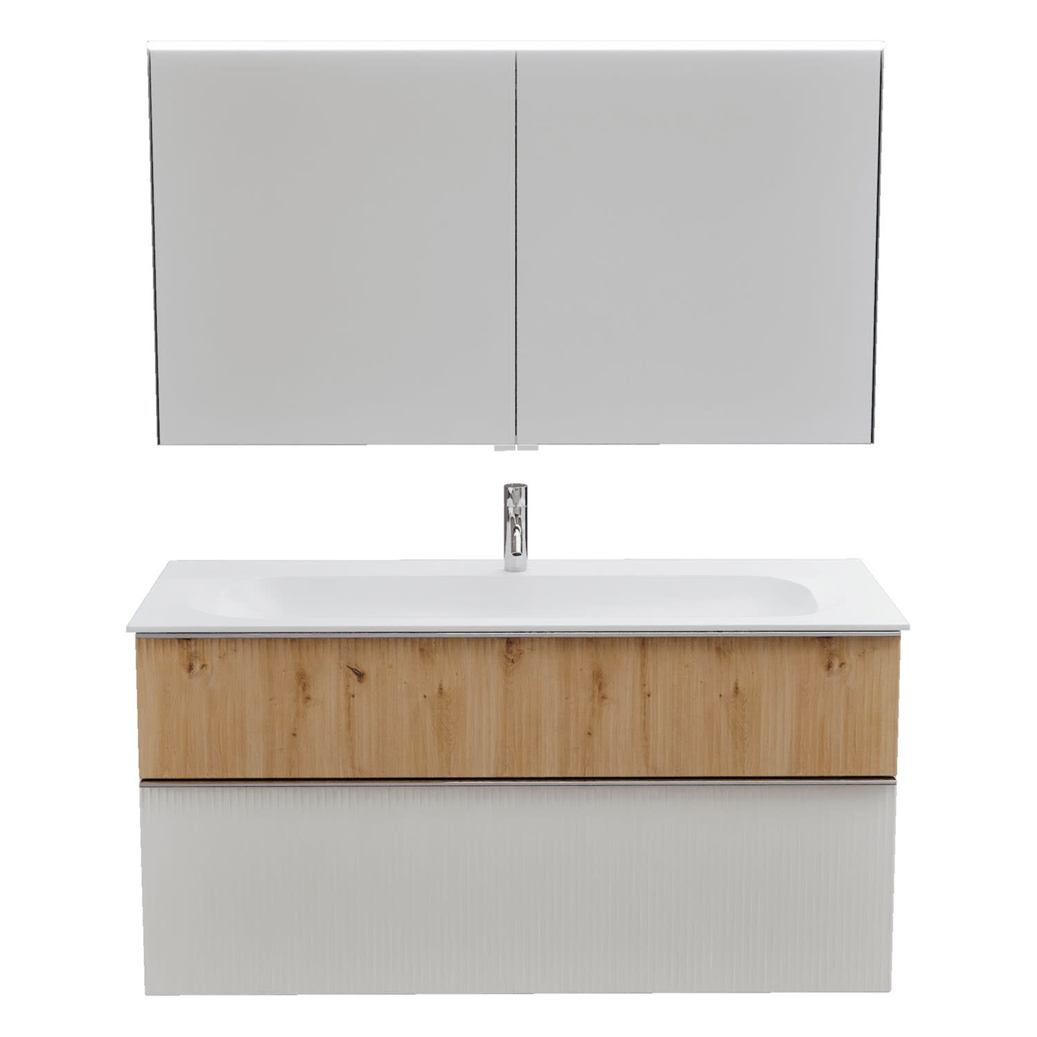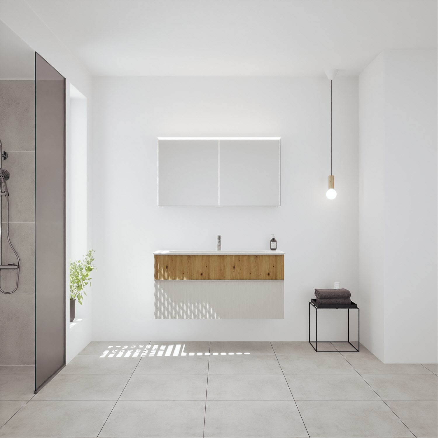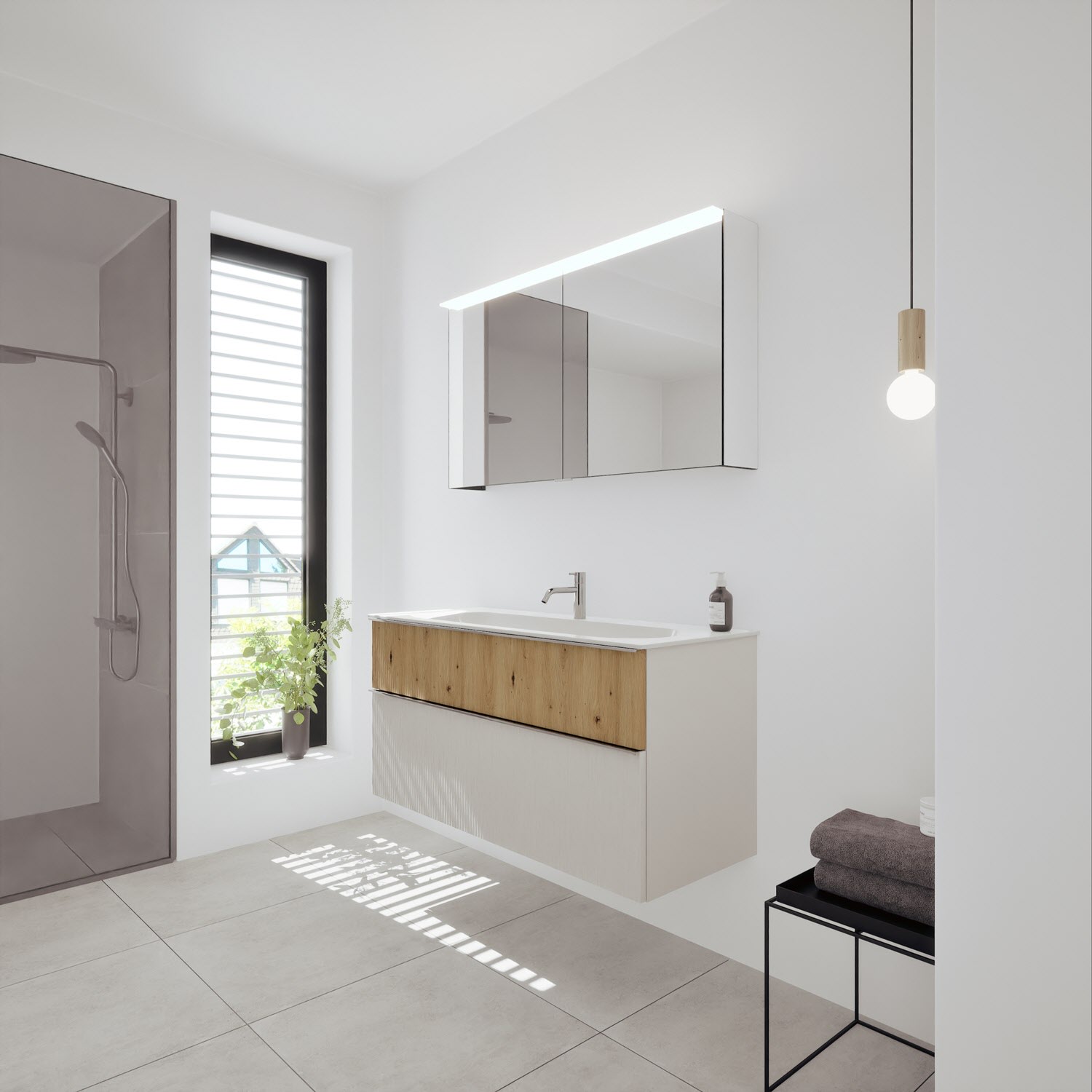 burgbad Fiumo 2.0 Badmöbelset 122 cm mit Waschtisch mit Unterschrank mit Griff G0146 und Spiegelschrank
