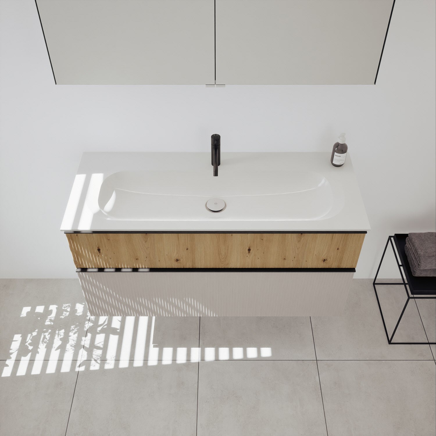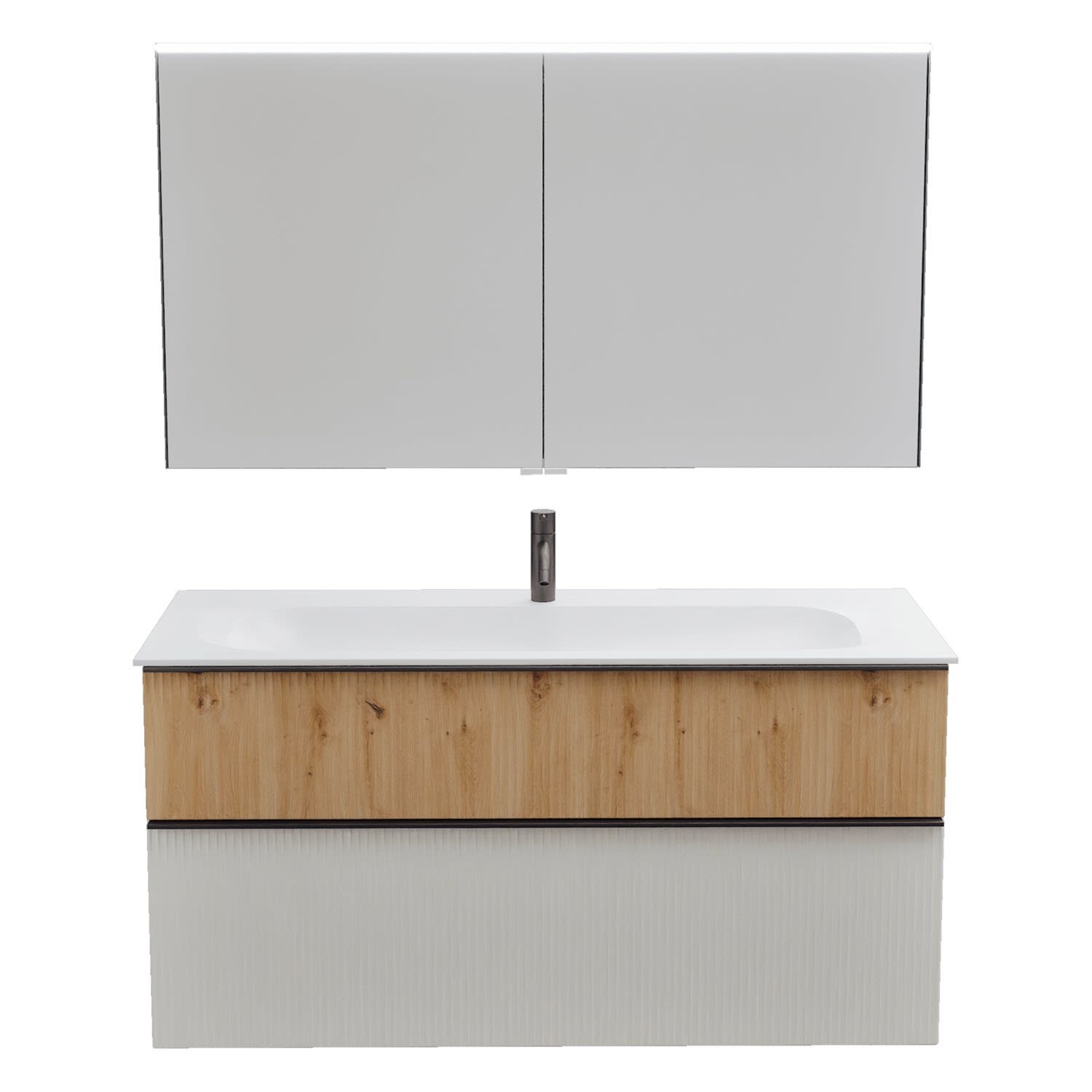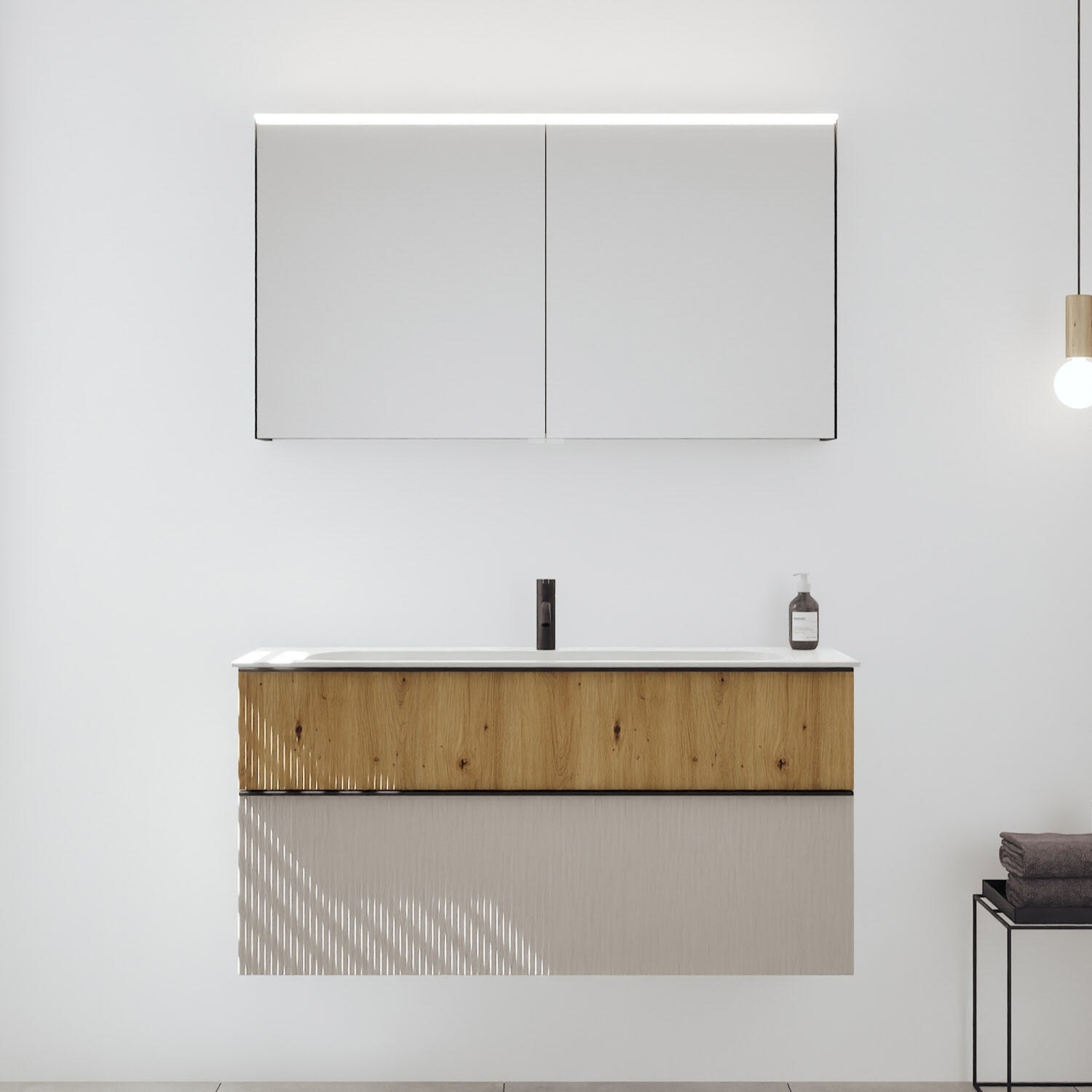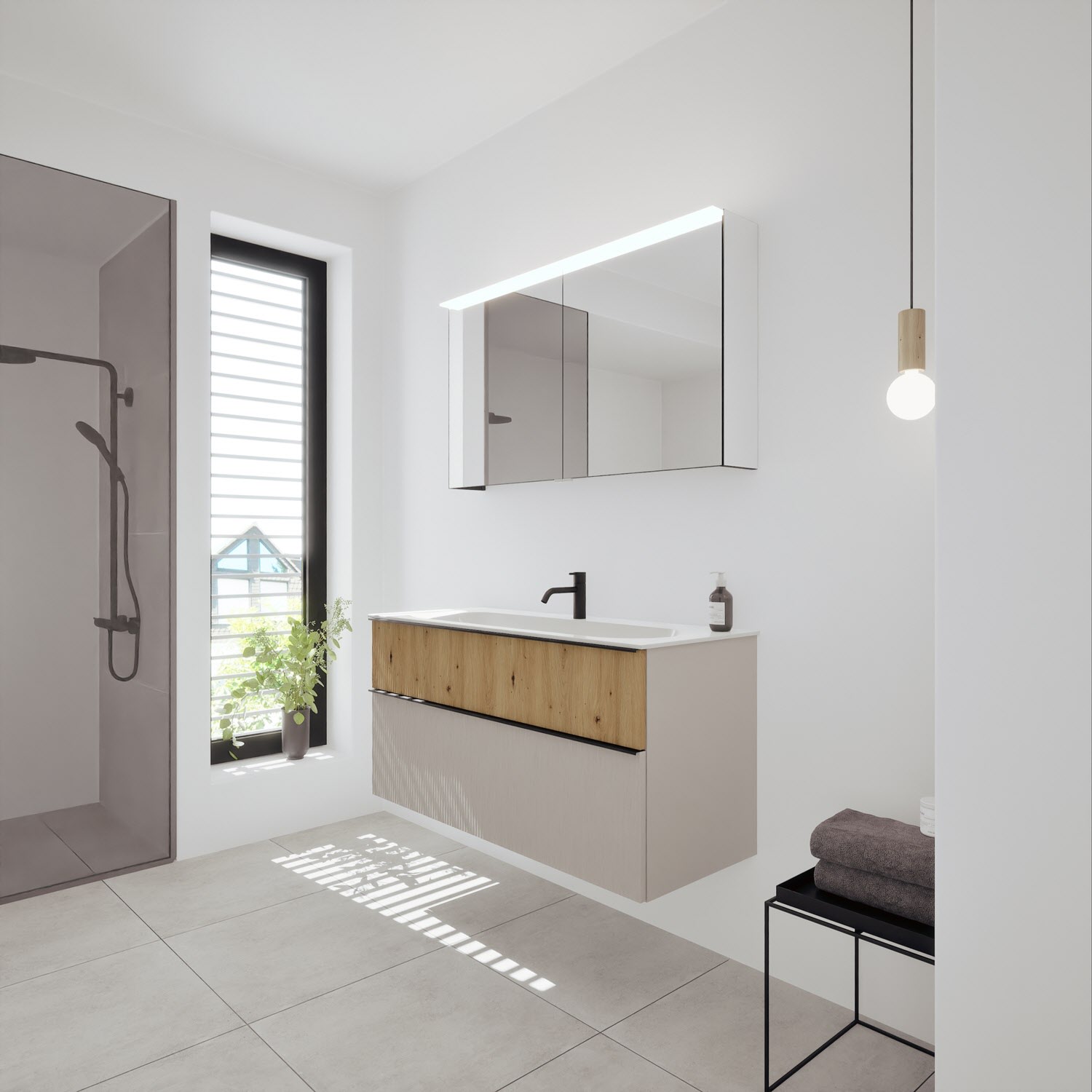 burgbad Fiumo 2.0 Badmöbelset 122 cm mit Waschtisch mit Unterschrank mit Griff G0200 und Spiegelschrank