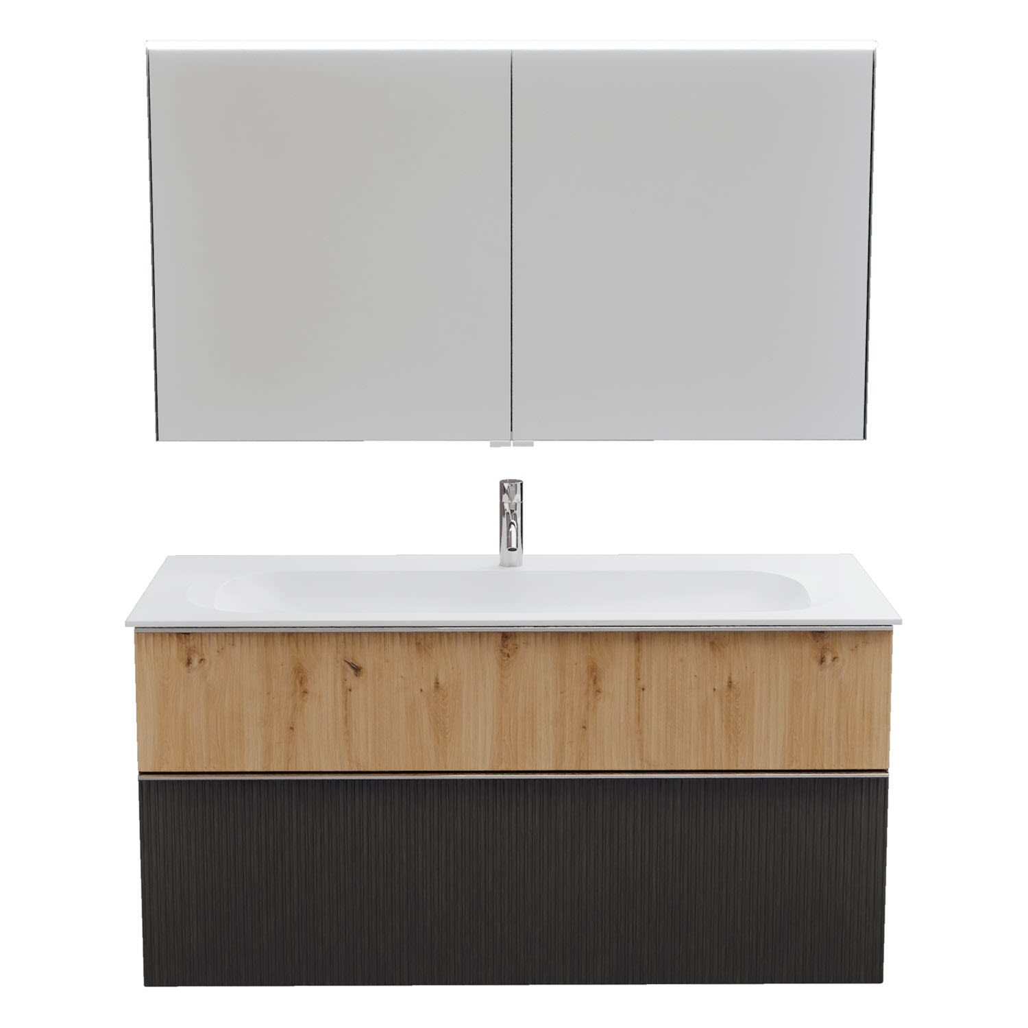 burgbad Fiumo 2.0 Badmöbelset 122 cm mit Waschtisch mit Unterschrank mit Griff G0146 und Spiegelschrank
