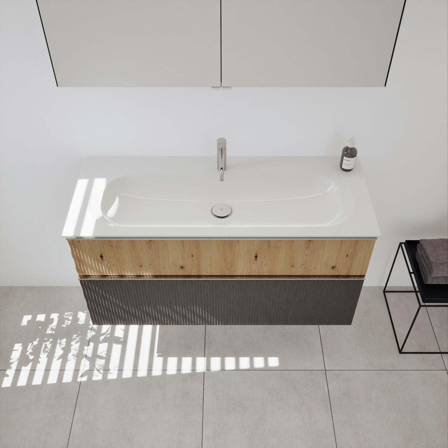 - Spiegelschrank, Waschtischunterschrank, Waschtisch,burgbad cleanFlow, Befestigung außer Stockschrauben