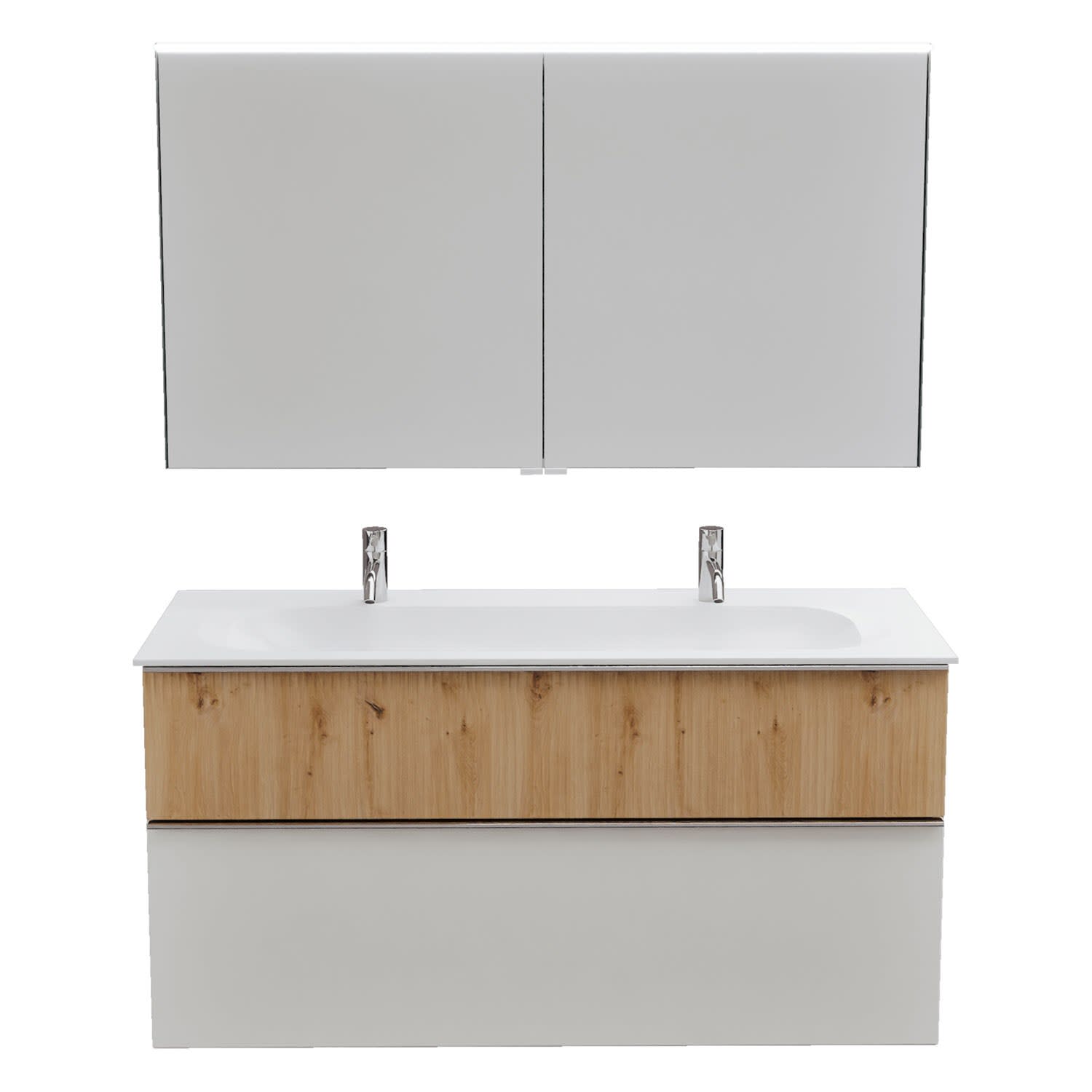 burgbad Fiumo 2.0 Badmöbelset 122 cm mit Waschtisch mit Unterschrank mit Griff G0146 und Spiegelschrank