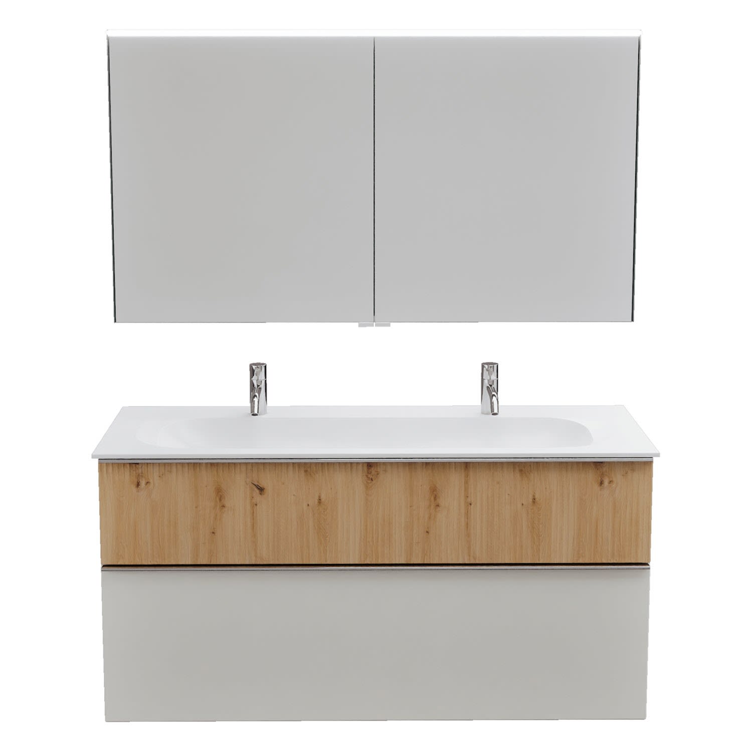 burgbad Fiumo 2.0 Badmöbelset 122 cm mit Waschtisch mit Unterschrank mit Griff G0146 und Spiegelschrank