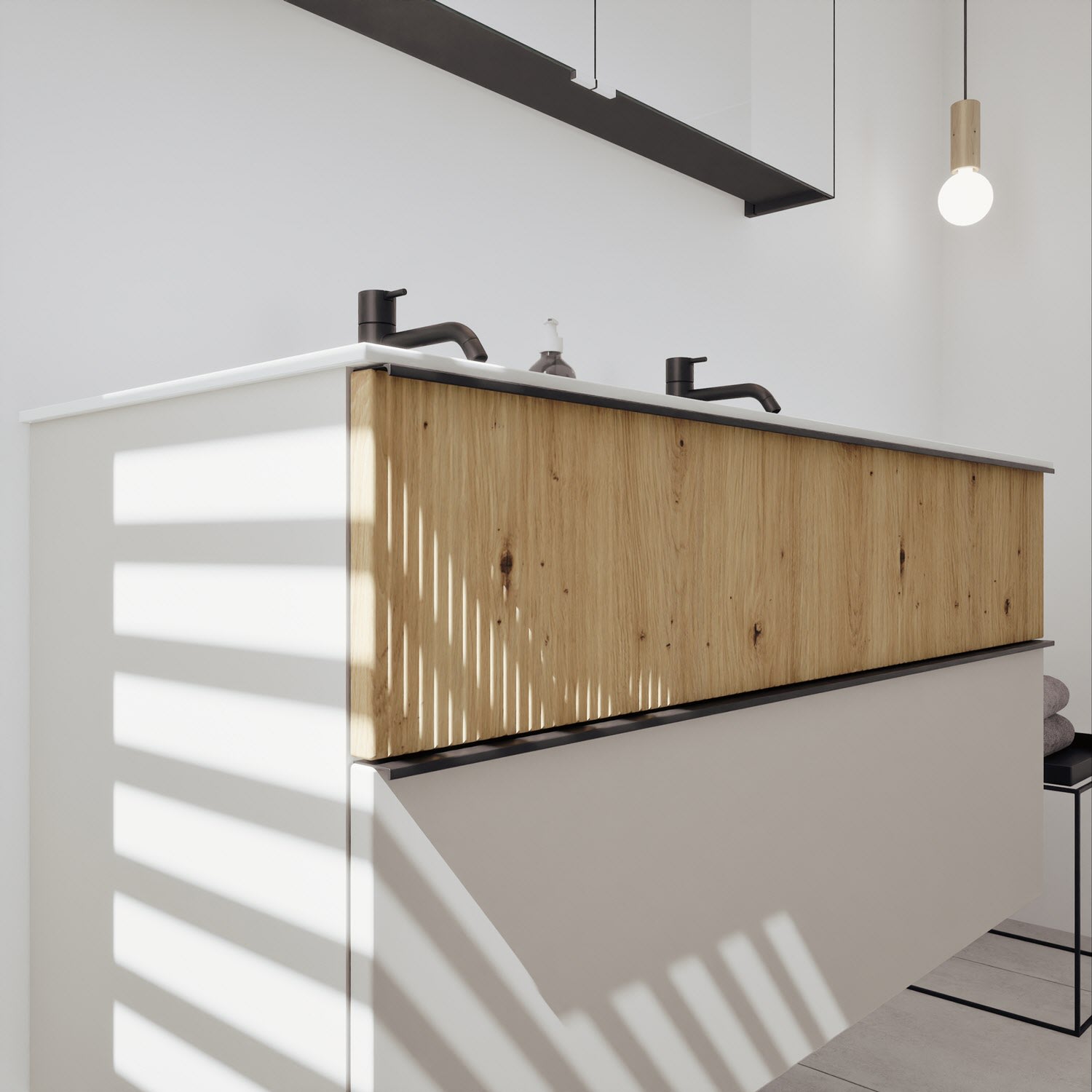 burgbad Fiumo 2.0 Badmöbelset 122 cm mit Waschtisch mit Unterschrank mit Griff G0200 und Spiegelschrank