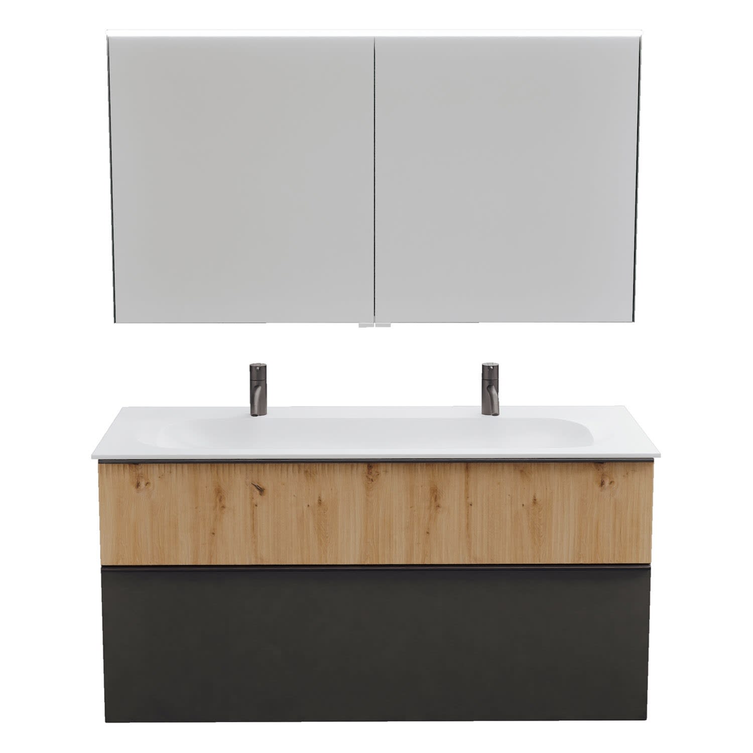 burgbad Fiumo 2.0 Badmöbelset 122 cm mit Waschtisch mit Unterschrank mit Griff G0200 und Spiegelschrank