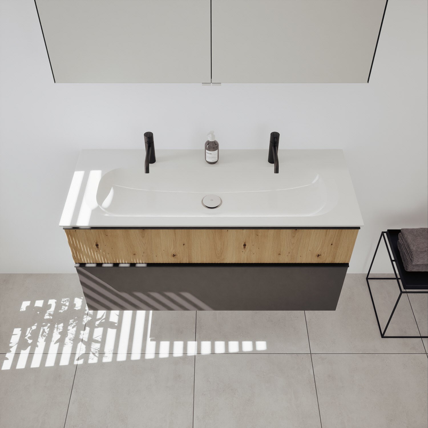 - Spiegelschrank, Waschtischunterschrank, Waschtisch,burgbad cleanFlow, Befestigung außer Stockschrauben