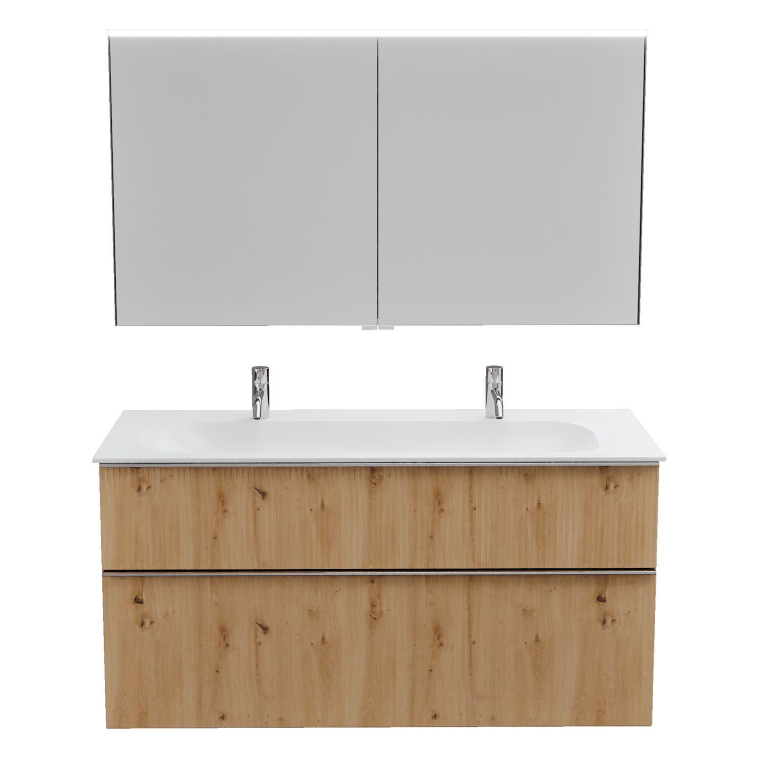 burgbad Fiumo 2.0 Badmöbelset 122 cm mit Waschtisch mit Unterschrank mit Griff G0146 und Spiegelschrank