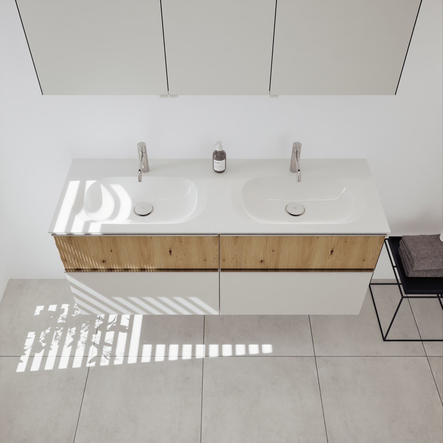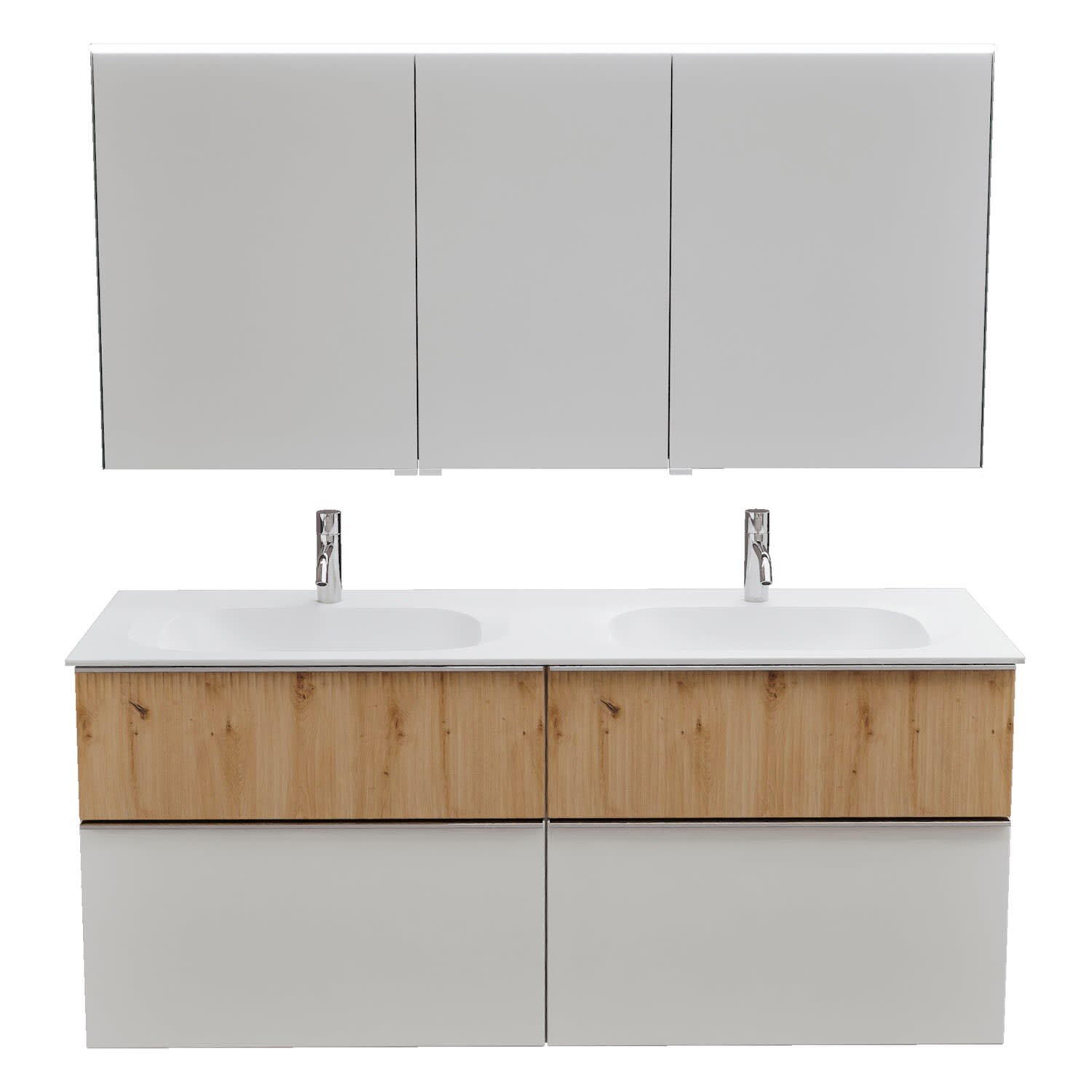 burgbad Fiumo 2.0 Badmöbelset 142 cm mit Waschtisch mit Unterschrank mit Griff G0146 und Spiegelschrank