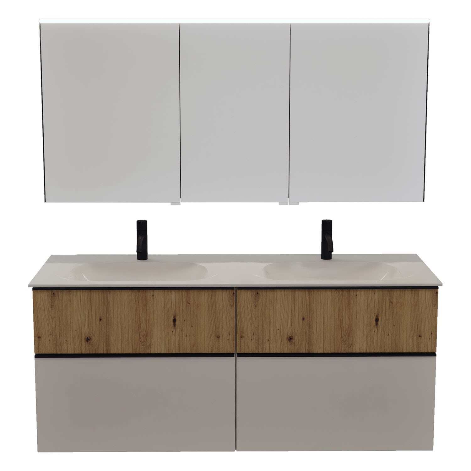 burgbad Fiumo 2.0 Badmöbelset 142 cm mit Waschtisch mit Unterschrank mit Griff G0200 und Spiegelschrank