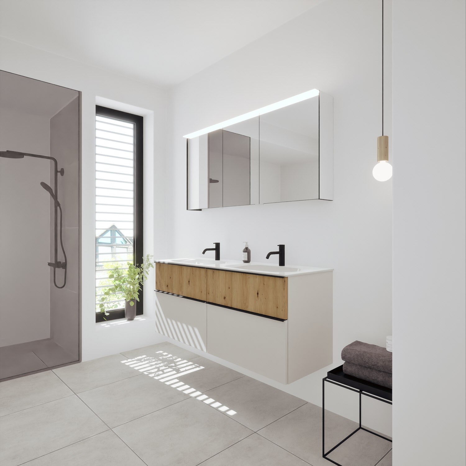 - Spiegelschrank, Waschtischunterschrank, Waschtisch,burgbad cleanFlow, Befestigung außer Stockschrauben