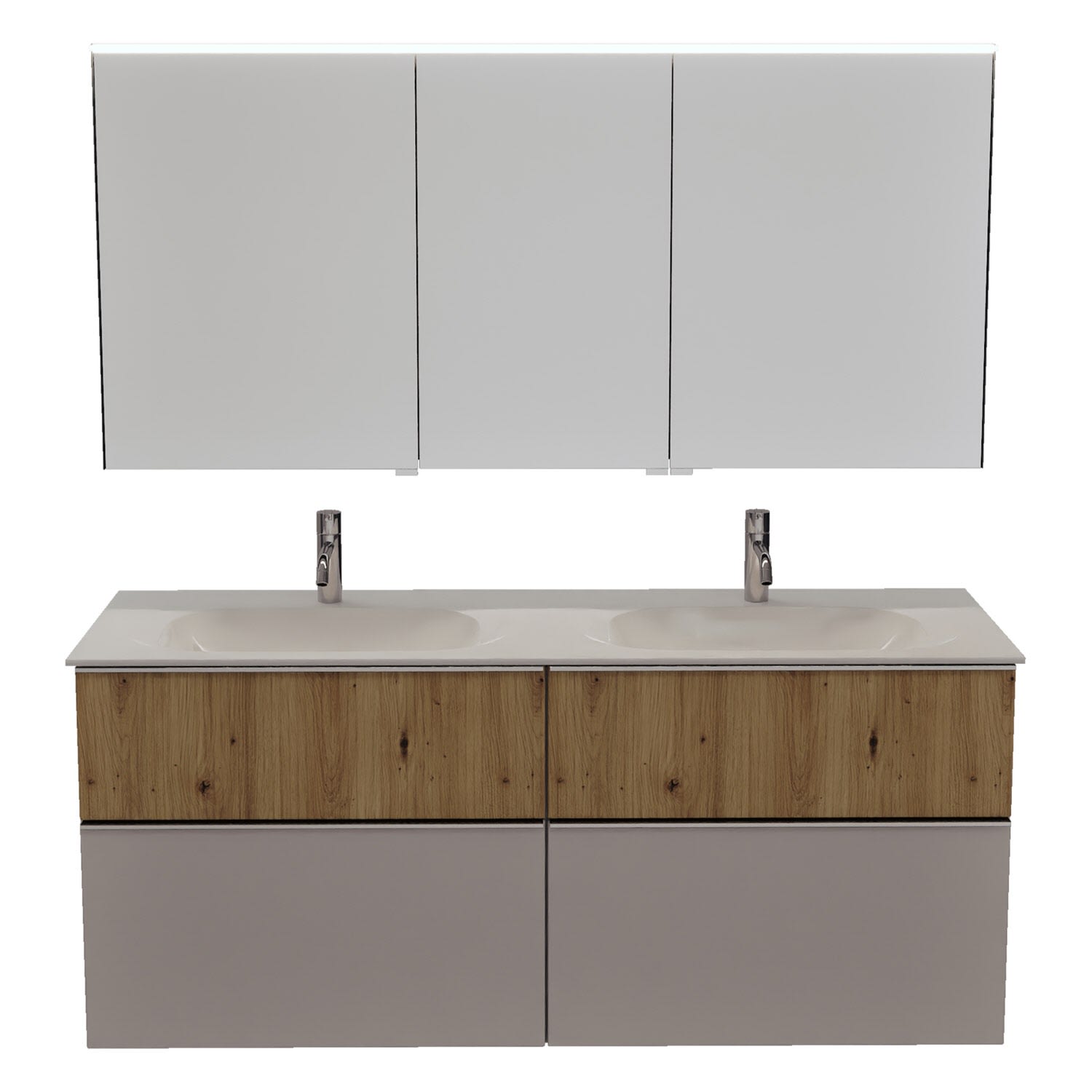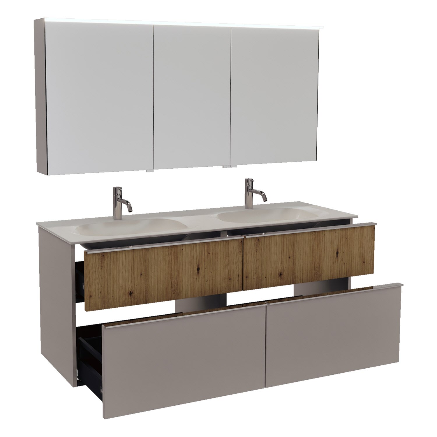 burgbad Fiumo 2.0 Badmöbelset 142 cm mit Waschtisch mit Unterschrank mit Griff G0146 und Spiegelschrank