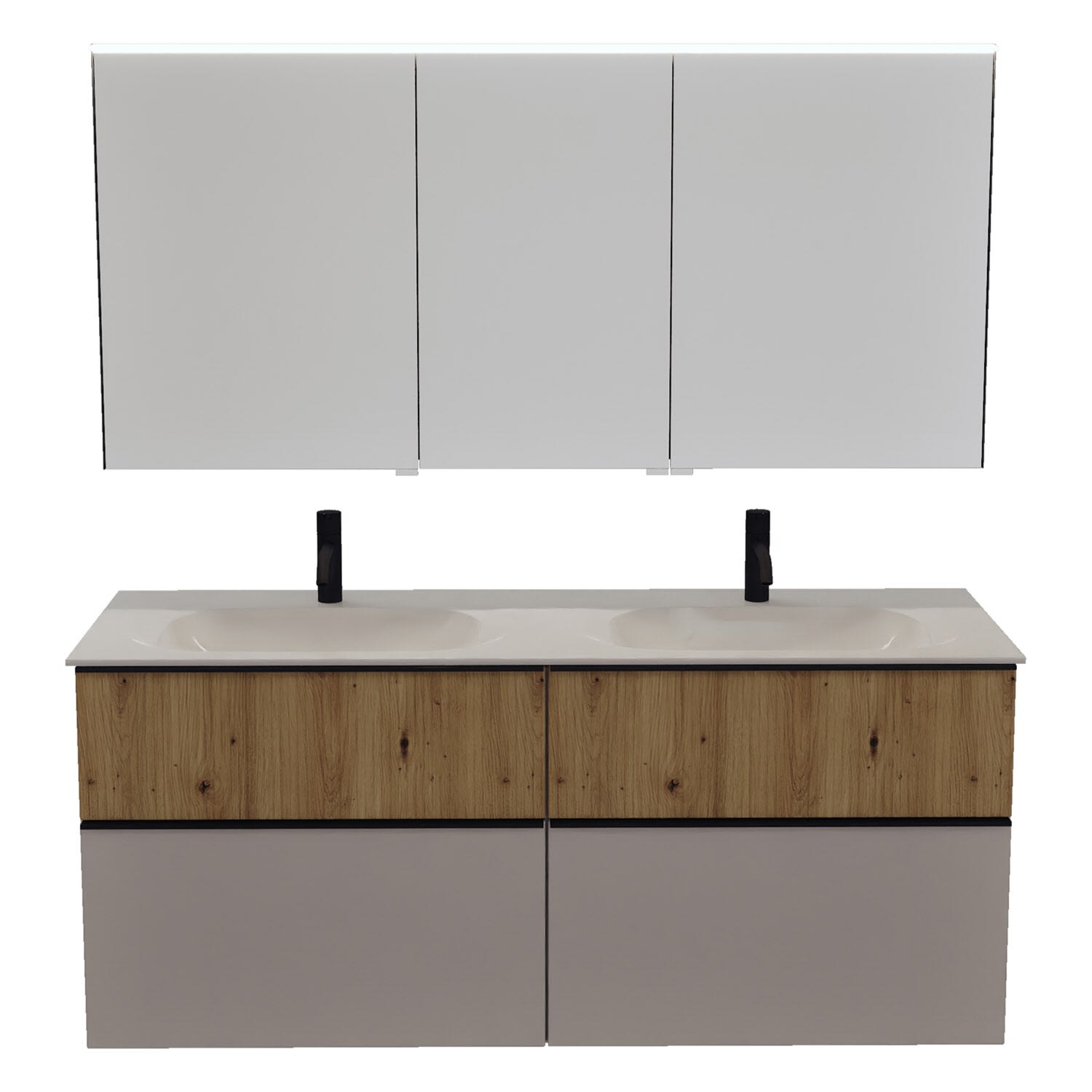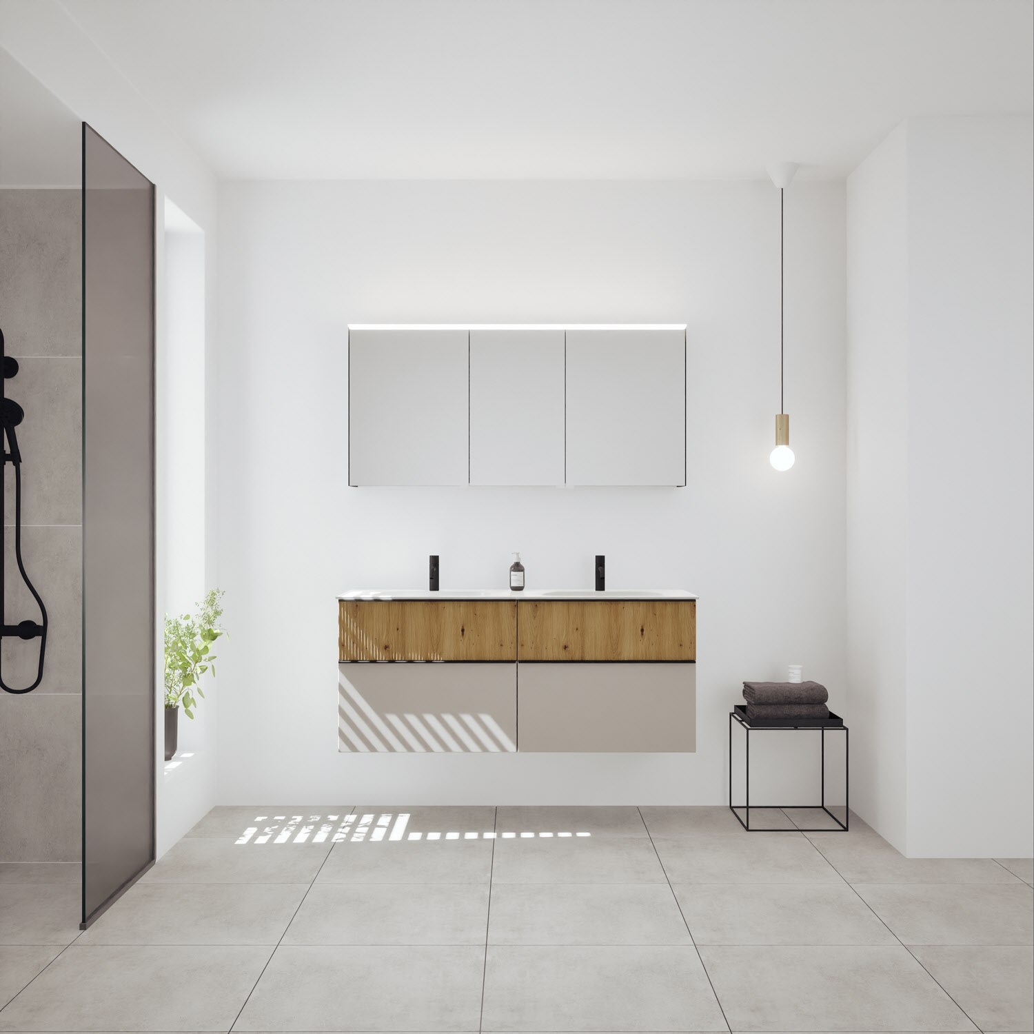 burgbad Fiumo 2.0 Badmöbelset 142 cm mit Waschtisch mit Unterschrank mit Griff G0200 und Spiegelschrank