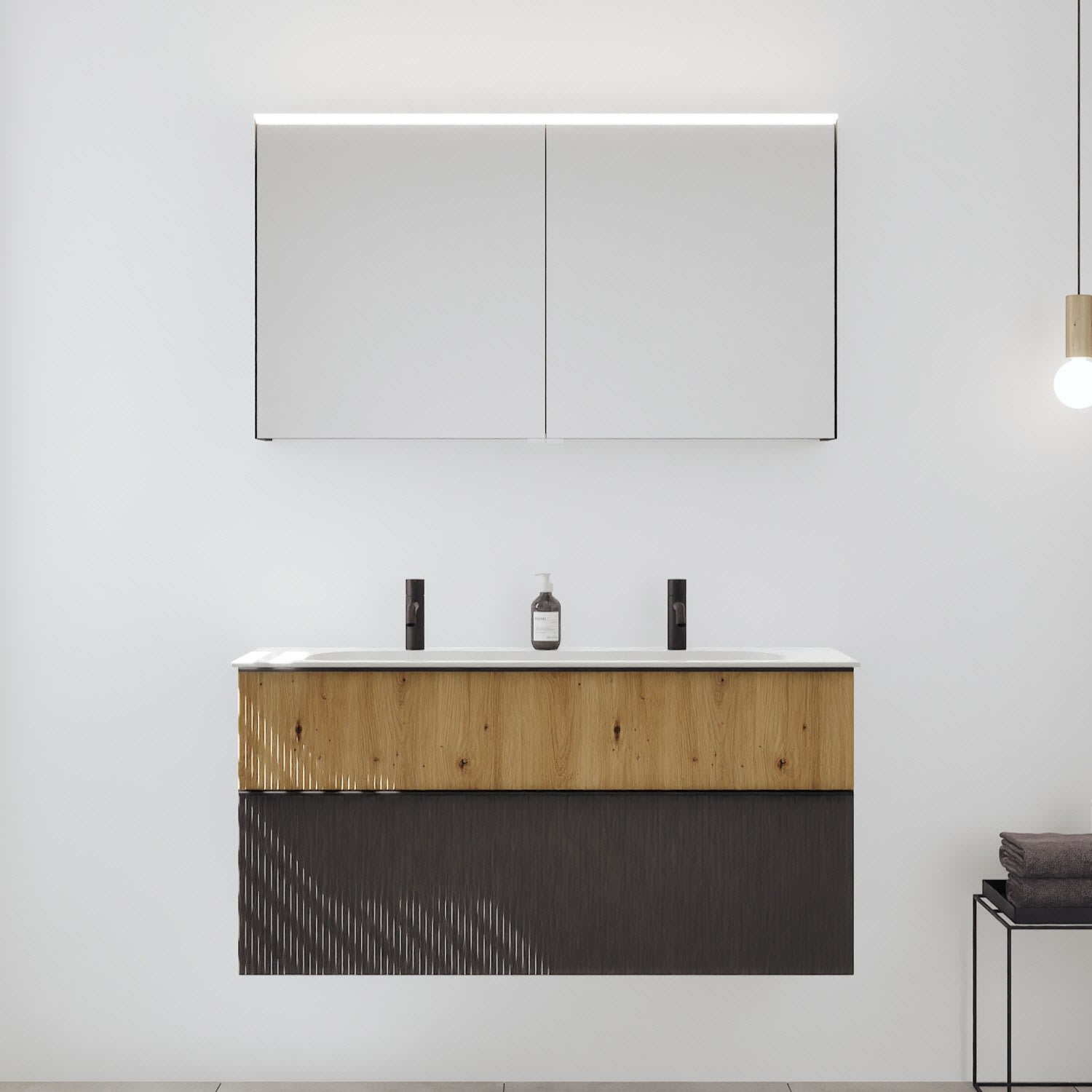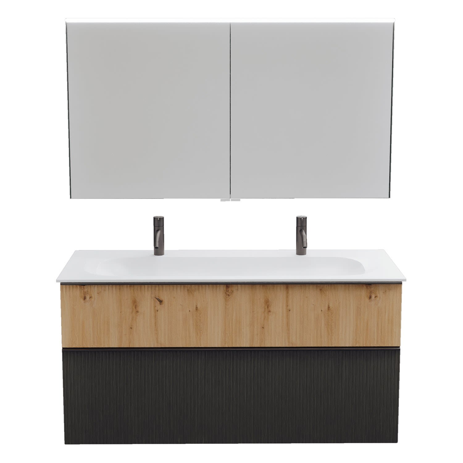 burgbad Fiumo 2.0 Badmöbelset 122 cm mit Waschtisch mit Unterschrank mit Griff G0200 und Spiegelschrank