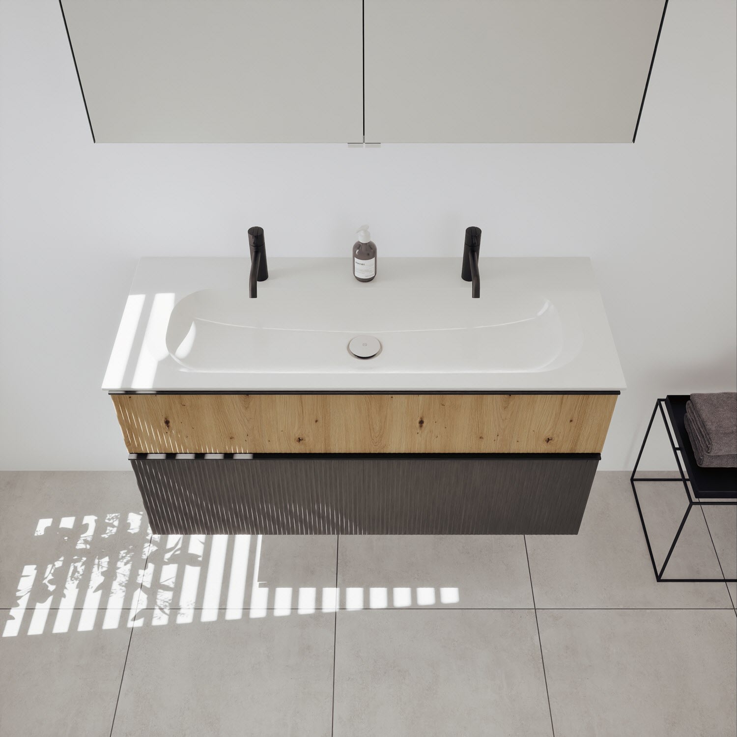 - Spiegelschrank, Waschtischunterschrank, Waschtisch,burgbad cleanFlow, Befestigung außer Stockschrauben