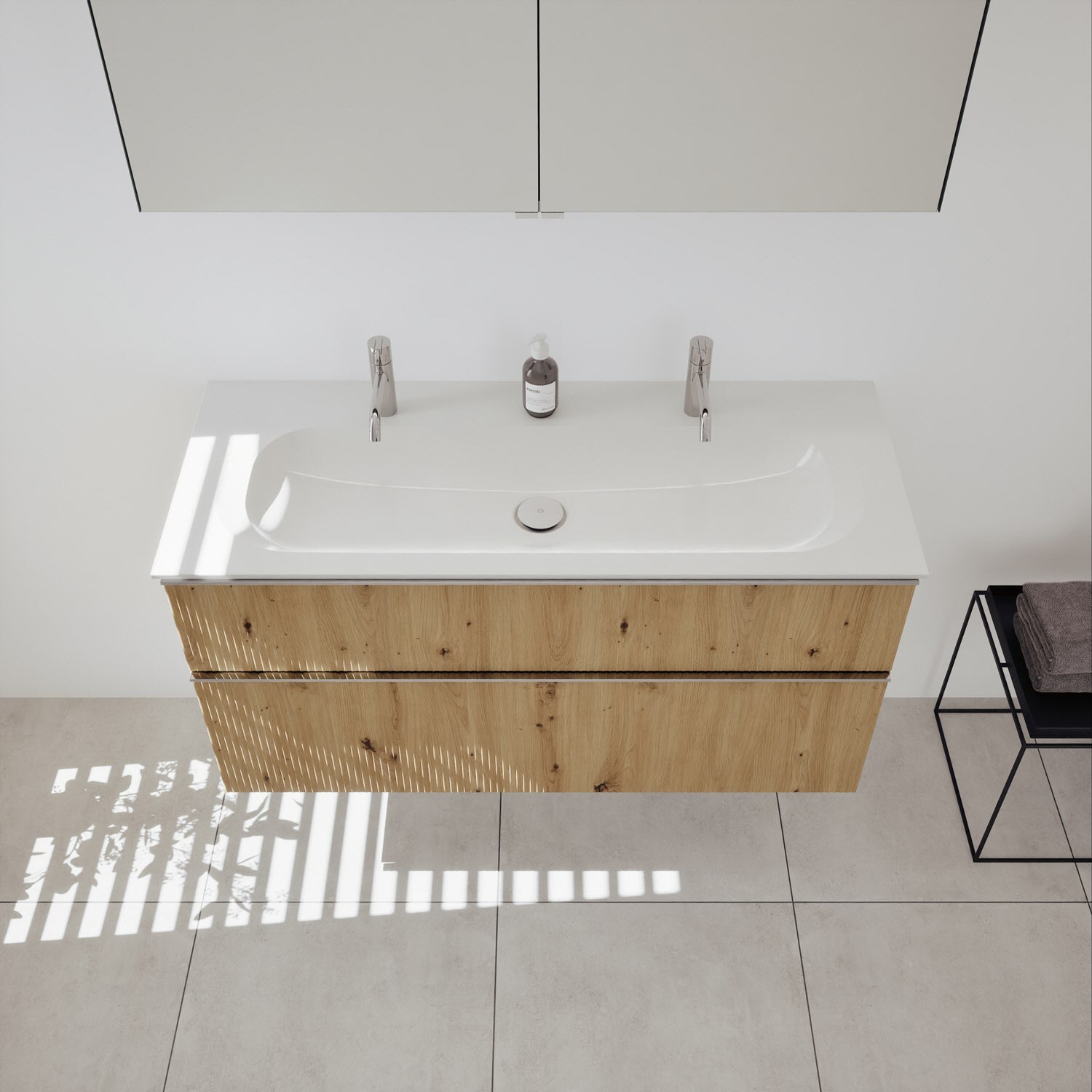 burgbad Fiumo 2.0 Badmöbelset 122 cm mit Waschtisch mit Unterschrank mit Griff G0146 und Spiegelschrank