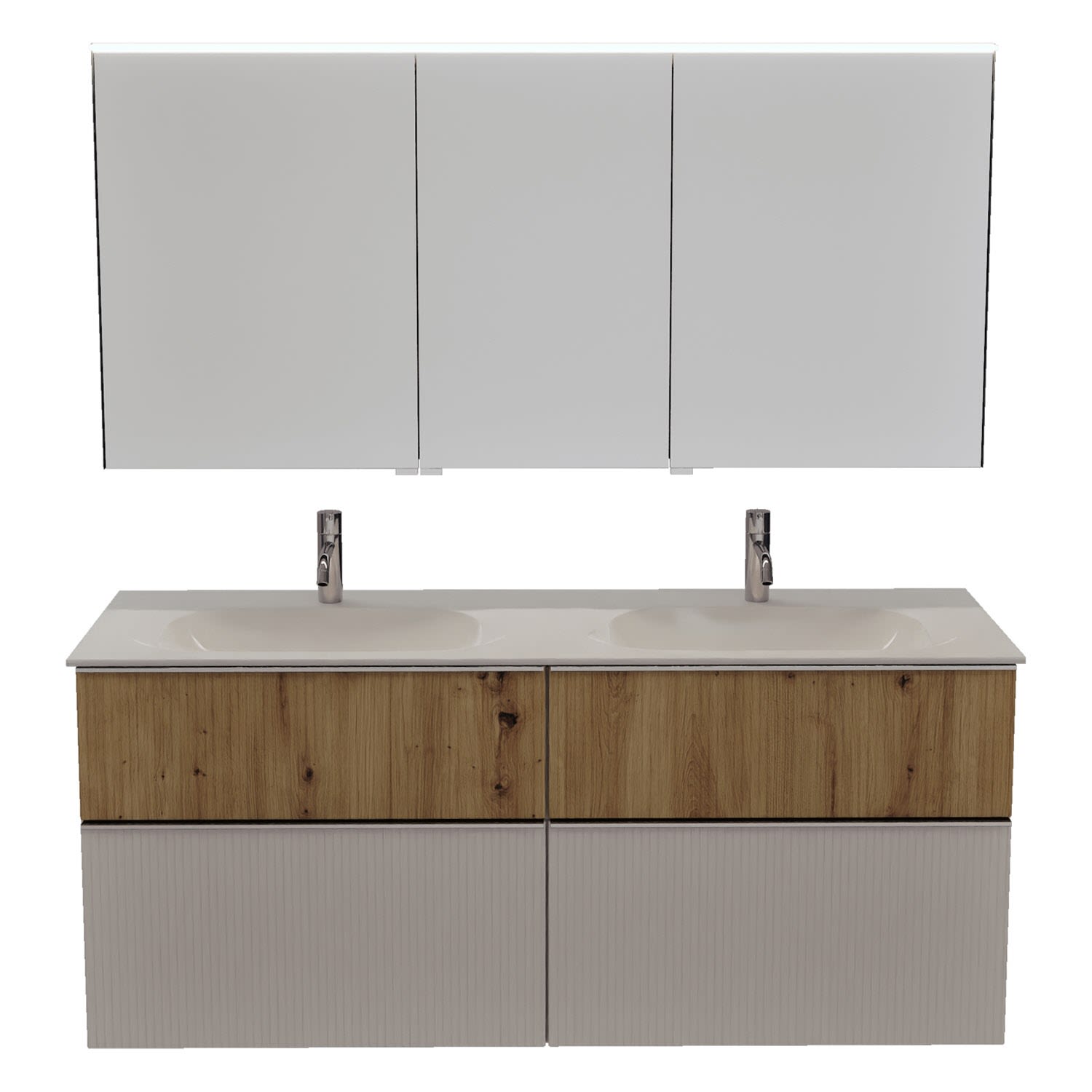 burgbad Fiumo 2.0 Badmöbelset 142 cm mit Waschtisch mit Unterschrank mit Griff G0146 und Spiegelschrank